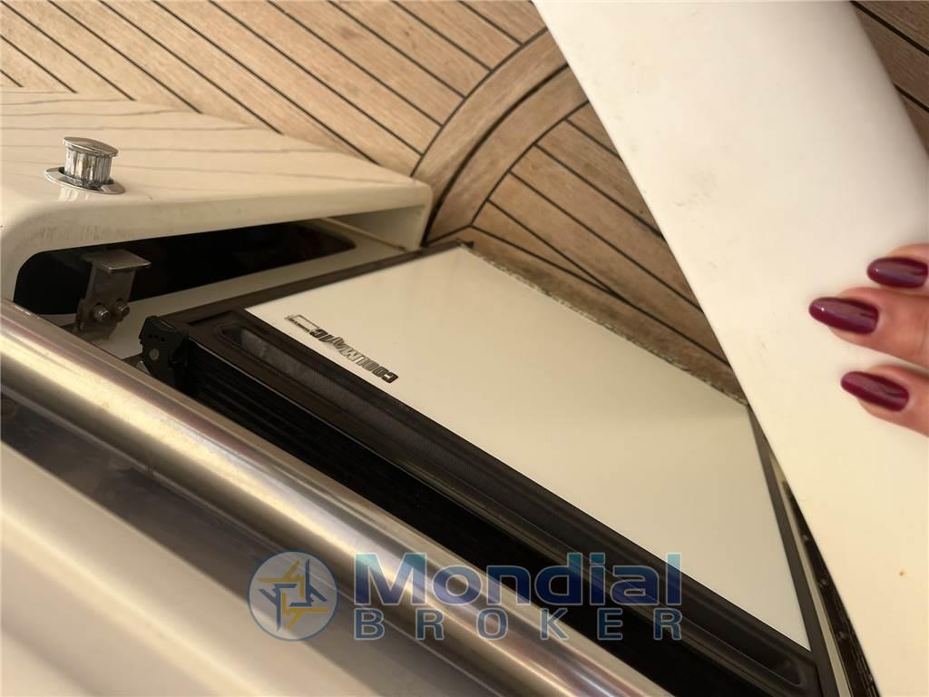 Allarme motore, Ancora, Colorazione speciale, Doccia esterna, Elica di prua - bow thruster, Flap idraulici (N°2), Impianto antincendio, Passerella (IDRAULICA), Piattaforma, Pompa di sentina automatica, Pompa di sentina manuale, Pozzetto Teak, Presa 220V banchina, Raddrizzatore, Rollbar, Salpa Ancore Elettrico, Scaletta da bagno, Tavolo pozzetto, Tender (CON DUE MOTORI JOHNSON 4HP O HP 25 SUZUKI NUOVO).