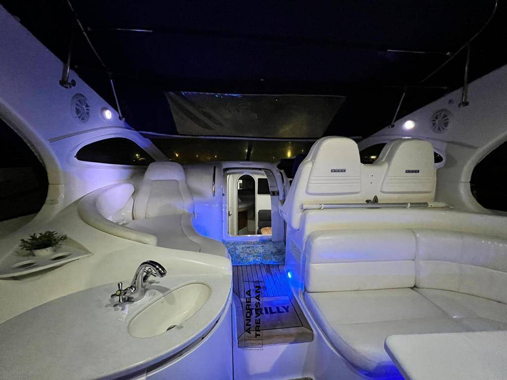 manette elettroniche , Aria condizionata , Generatore di corrente, Passerella idraulica Besenzoni , elica di prua di manovra , Cucina a induzione , micronde,, 2 frigoriferi int+est, TV, tendalini con chiusura completa , dotazioni di bordo , salpa ancora elettrico con con conta catena , Gps Garmin, vhf, flaps idraulici, presa acqua continua , luci interne led