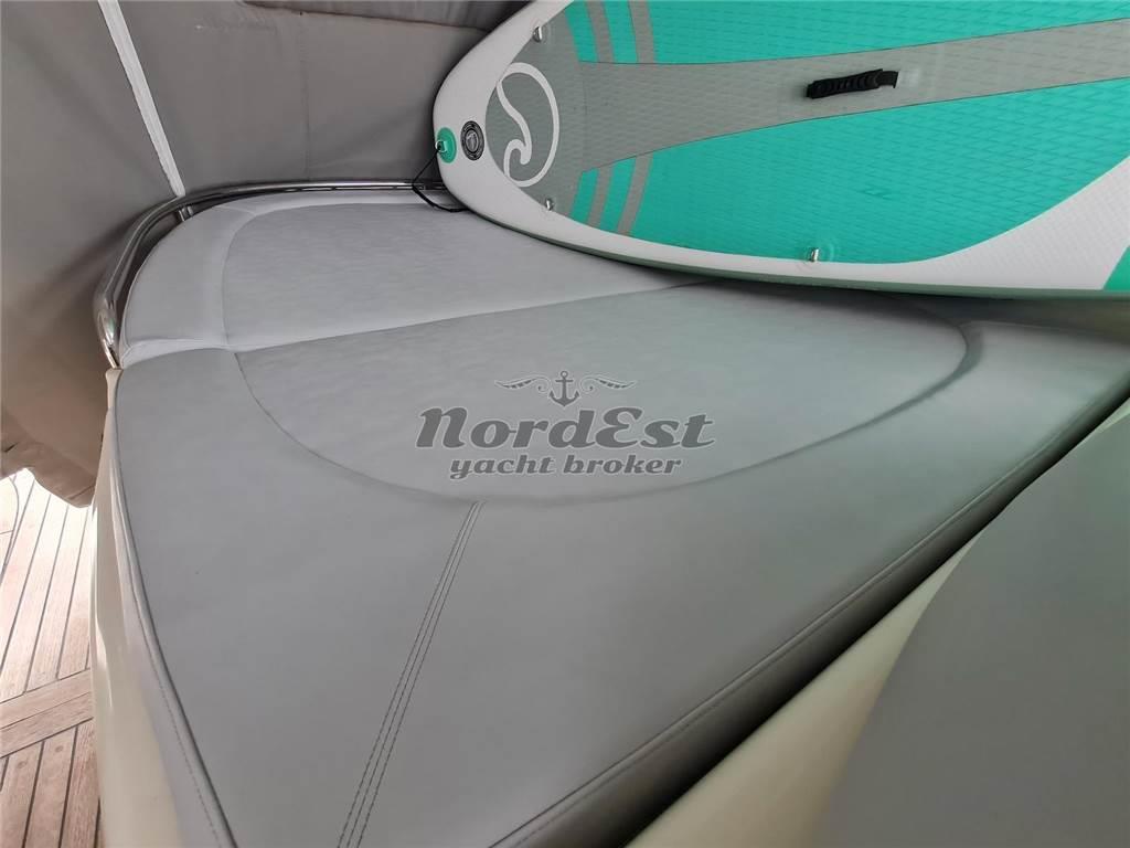 Disponibilità immediata. Piedi poppieri nuovi con circa 100 ore di moto. Motori sbarcati 2021. Cuscineria nuova 2023. Tendalini colore beige. Raymarine nuovo 2021, teak in ottimo stato.