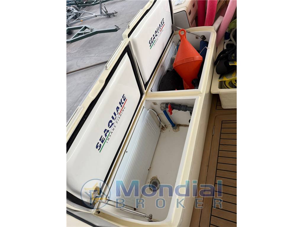 Particolarmente attrezzata per la pesca, l’imbarcazione è dotata di due vasche del vivo e vasche del pescato refrigerate con motore a 12V.