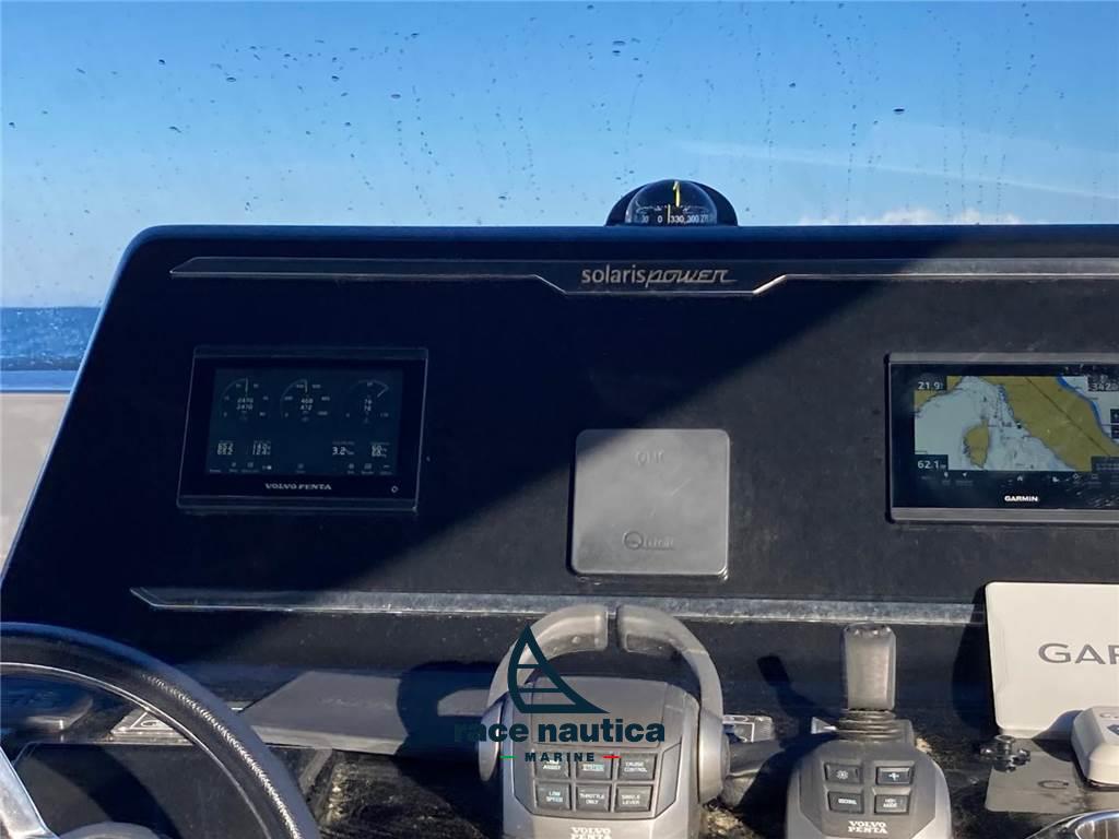 Solaris Power 40 Open in ottime condizioni e disponibile a visite. Joistick Volvo, Volvo trip computer, Autopilota volvo, Chartplotter Garmin, Elica di prua, Coperta verniciata con materiali alta temperatura, Coperta in teak, Teak (sintetico grigio con comento bianco), Murate verniciate con materiali ad alta temperatura, Passerella/scaletta bagno elettrico in acciaio inox con gradini, T-Top completo,Coperta e T-Top verniciati con materiale alta temperatura (grigio metallizzato), Doppia Elica Dual Prop, Scafo in Vetroresina, Coperta in Teak Sintetico, Boiler, Caricabatterie, Autoclave, Serbatoio acciaio INOX Gasolio,Tavolo pieghevole in pozzetto, 2 frigoriferi extra sotto le sedute del pozzetto + 1 frigorifero, Cucina con due fuochi ad induzione, Colori a scelta per cuscineria esterna, Portabicchieri prendisole a prua e poppa e sedili pilota, Oblò apribile di prua, Seconda cabina completa con due letti, Contacatena digitale, Kit ormeggio, Asta inox porta parabordi gavone di prua, Impianto stereo professionale, Batterie servizi aggiuntivi 105 amp + carica batterie maggiorato, Pacchetto luci di cortesia esterne, Generatore 5Kw, Bimini poppa con pali amovibili, copertura totale per console e parabrezza, Copertura per tavolo pozzetto, Copertura prendisole (prua e poppa) e divano centrale, Upgrade 4 casse esterne, Presa stagna garage, Colore per murate, Bimini poppa con pali amovibili (in carbonio), Dotazioni sicurezza entro 12 miglia, 8 Parabordi.