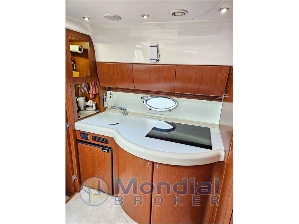 Questo Gobbi Atlantis 425 sc presenta le sue inconfondibili linee slanciate e morbide che rendono il layout esterno particolarmente armonico e compatto, ma al contempo aggressivo e sfacciato. A poppa troviamo una vasta plancia, una beach area decisamente spaziosa che si estende ai piedi del grande prendisole, collocato sopra il vano motore. Curata da un armatore estremamente attento e meticoloso nella manutenzione, Nel corso dell’anno 2023 sono stati sbarcati i motori con revisione totale(a cura di Nautica Casarola), sostituzione riser e scambiatori di calore, sostituzione tubazioni raccordi e manicotti, revisione turbine, revisione iniettori, inoltre sbarco e revisione completa piedi poppieri con sostituzione delle coppie coniche, sostituzione campane, lucidatura completa e Sostituzione di tutte le pompe di sentina. Nel 2023 è stato rifatto il teak sulla plancetta di poppa e sono stati rifatti i tendalini completi con chiusura camper. Installata lavastoviglie in cucina nel corso del 2023 e rifatta plancia comandi in carbonio.