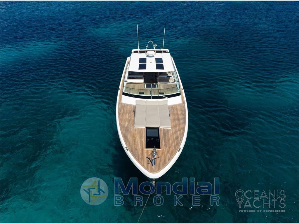 AIS, Ancora, Angolo barra, Antenna radar, Autoclave, 4 Batterie (Litio), Bussola, Camminamenti laterali in teak, Caricabatterie, Comando motori elettronico, Computer di bordo, Contametri catena, Contamiglia, Doccia esterna, Ecoscandaglio, Elica di prua - bow thruster, Flap idraulici, Joystick, Pannelli Solari, Passerella (idraulica ), Piattaforma (idraulica Tender lift), Pilota automatico, 2 Plotter con antenna GPS (Garmin 22" HD touch), 3 Pompa di sentina elettrica, Pozzetto Teak, Presa 220V banchina, Radar, Radio VHF, Salpa Ancore Elettrico, Scaletta da bagno, Selle per Tender, Stabilizzatori (Seakeeper 9), Tavolo pozzetto, Tender (Williams idrogetto), Tromba, T-Top, Tuga in teak