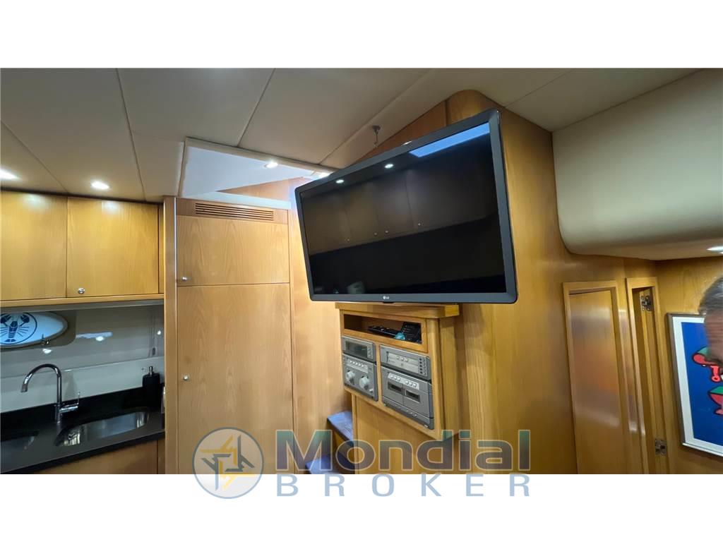 passerella idraulica a scomparsa, plancia di poppa affondabile, aria condizionata C/F, cuscineria prendisole, tendalini completi, mobile bar in pozzetto, elica di prua e poppa, garage per tender