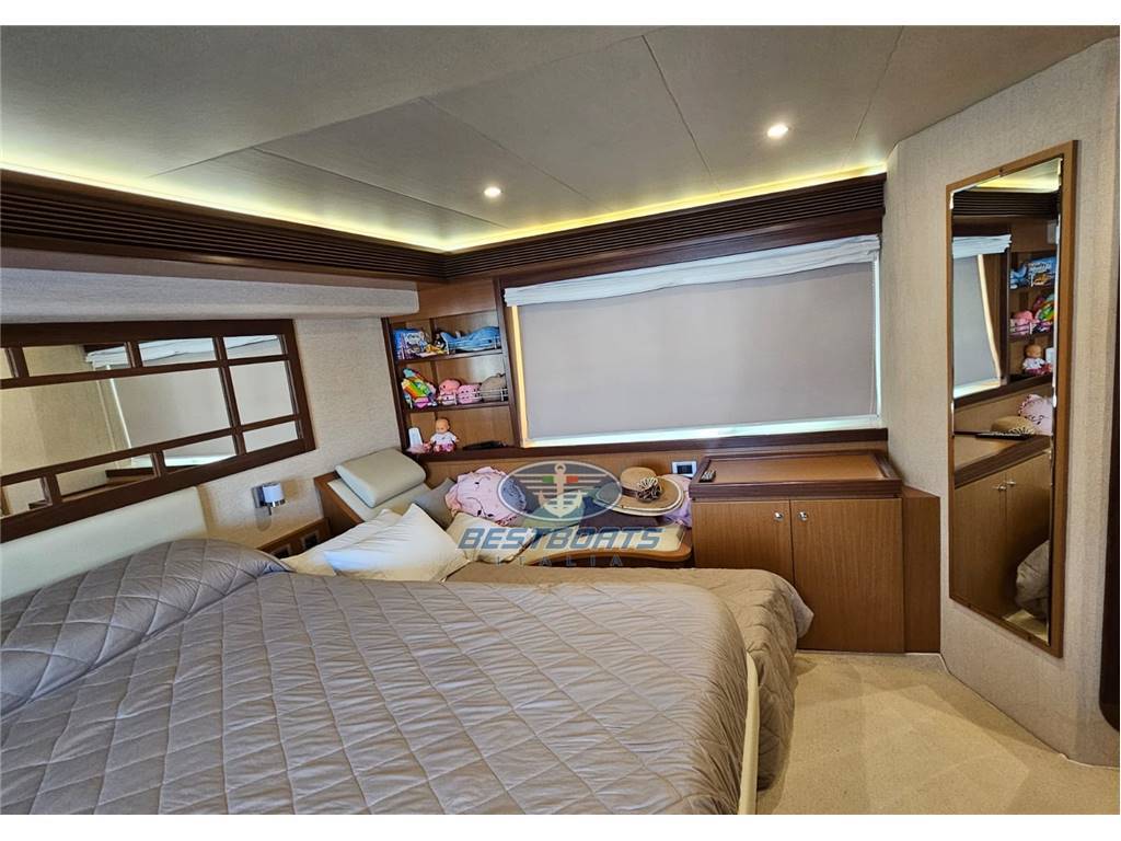 Pozzetto con tavolo e sedute, accesso dalla porta d'ingresso vi catapulterà nell'area dinette accogliendovi in uno spazio open space con vista a 270° grazie alle ampie vetrate, nel main deck è presente un grande divano con mobile tv, andando verso prua ci sarà un tavolo da pranzo con passaggio alla zona notte: cabina master, una cabina VIP e una terza cabina matrimoniale. Tutte le cabine con bagno privato, doccia e aria condizionata indipendente.