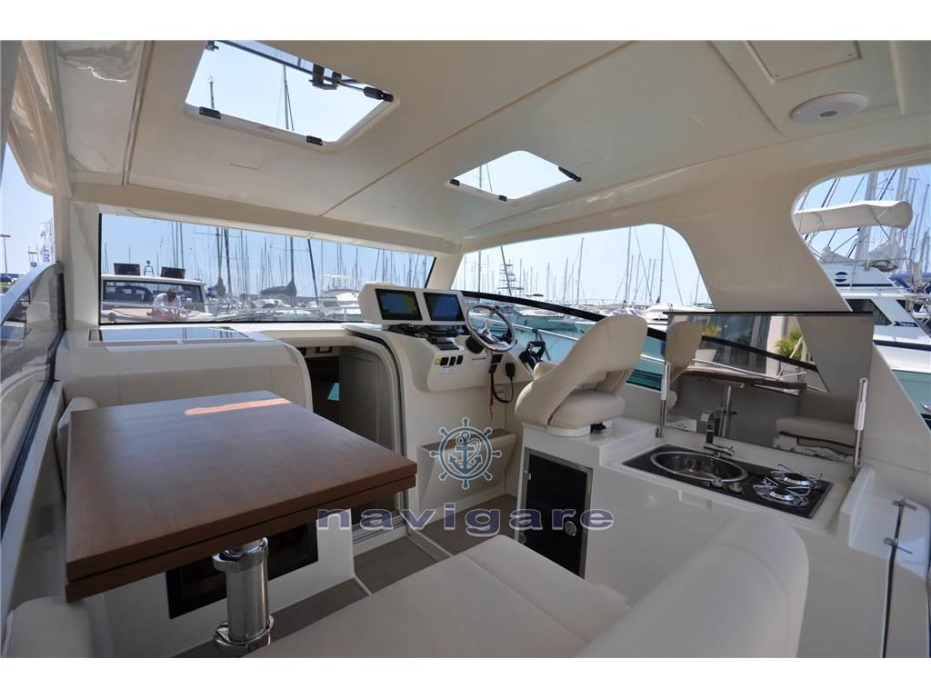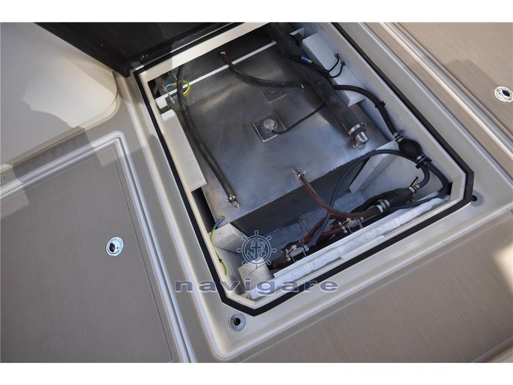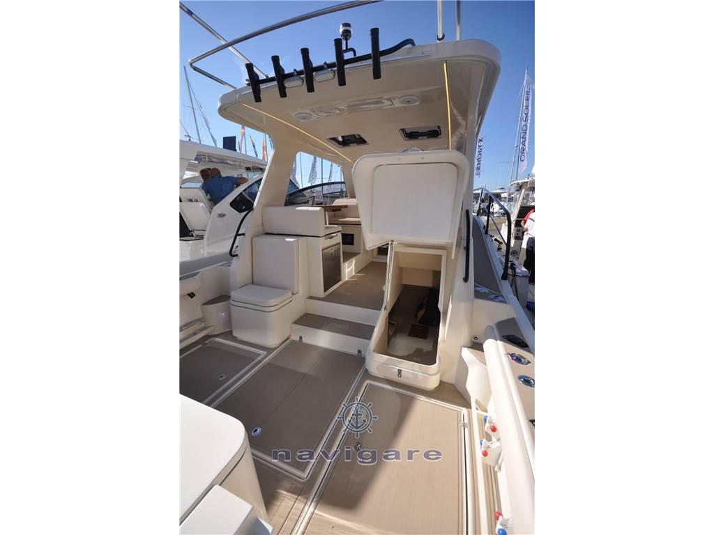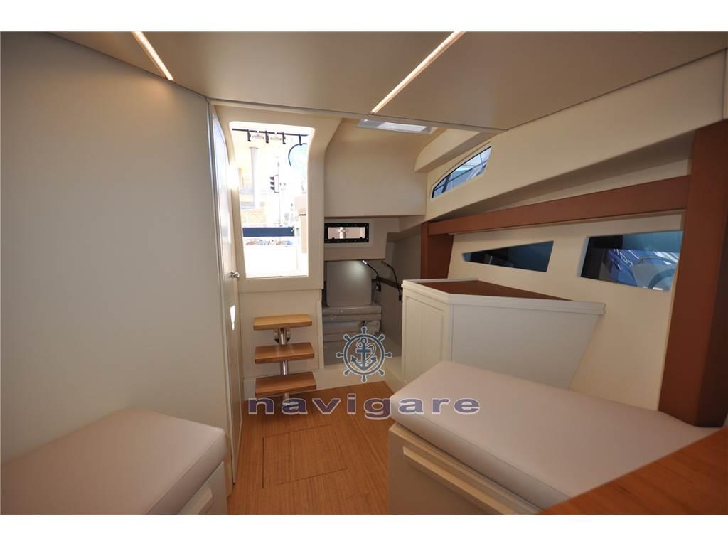 Un hardtop protegge l’area cucina/dinette e la consolle, che guarda verso prua dove un ampio prendisole definisce la prua come l’area relax per la famiglia del pescatore. La classica carena Tuccoli porta questa barca fino a 42 nodi spinta da 600 cv, in versione mono o bimotore, esclusivamente fuoribordo. Per la velocità di crociera, invece, questo scafo si attesta intorno ai 25 nodi.