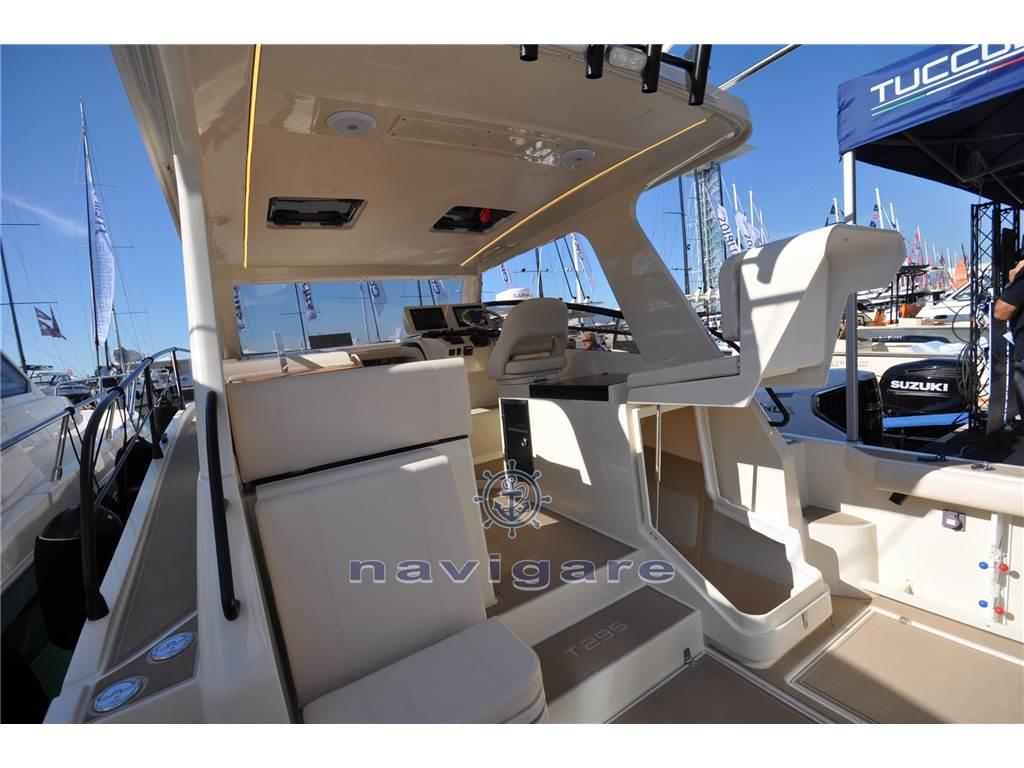Tuccoli Marine, famosa per le sue imbarcazioni da pesca, presenta un fisherman pensato per un uso ibrido, sia barca da pesca che da diporto. Tuccoli T295 sarà infatti disponibile in due versioni: VM, per la pesca senza compromessi, in cui la configurazione sottocoperta, più sportiva e spartana, è votata alle lunghe permanenze in mare richieste dalle battute di pesca più a lungo raggio; e SF Montecristo, con un layout decisamente più diportistico, con una cabina armatoriale e una per gli ospiti, pensato per le crociere con la famiglia.