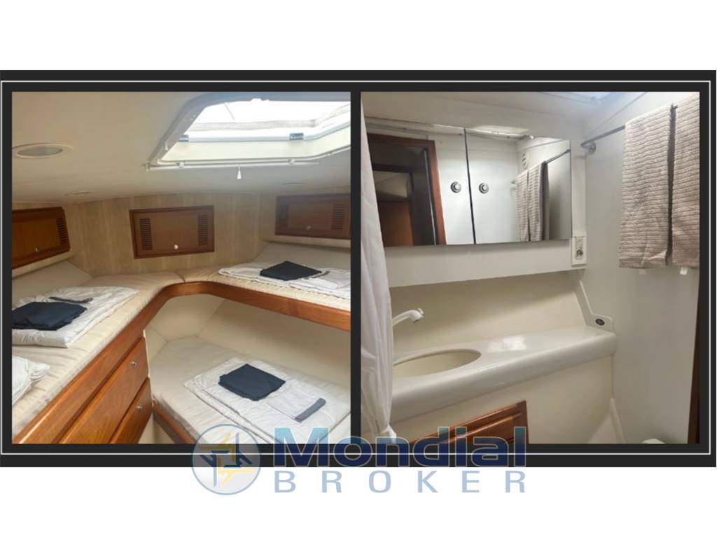 Beautiful American fisherman in perfect condition, a few hours at sea. Interior layout with large owner's cabin amidships with bathroom, 3-seater guest cabin in the bow with bathroom, fantastic living room with equipped kitchenette, sofa and dining table. Accessories: Cockpit control throttles, bow thruster, Simrad autopilot, hydraulic gangway, total closure of the fly in stratglass, stereo, live/fish tank, divers. Dual motors for air conditioning, washing machine with dryer