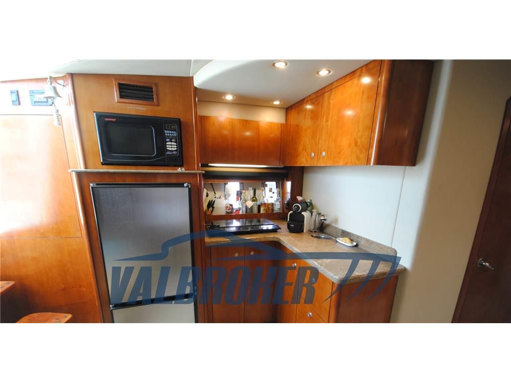 4 Altoparlanti, Aria condizionata (Cruisair), Aspirapolvere centralizzato, Boiler, Cappottina, Copripozzetto, Cuscineria completa, Frigorifero interno, Impianto acque nere, Microonde, Pavimento interno in legno, Piastra elettrica, Stereo, Teli chiusura T-Top, TV, WC marino elettrico
