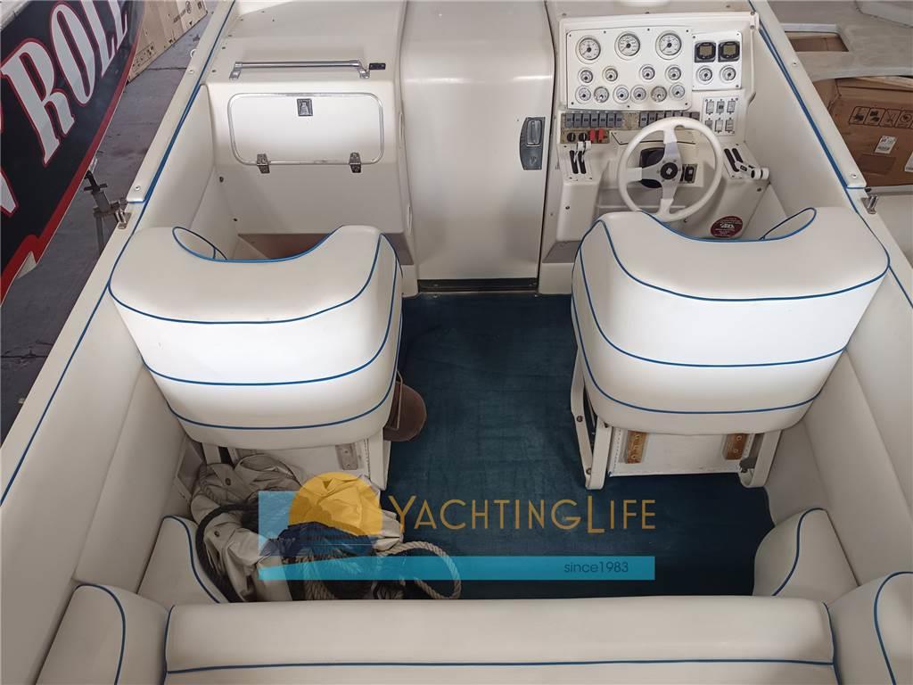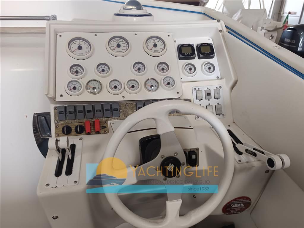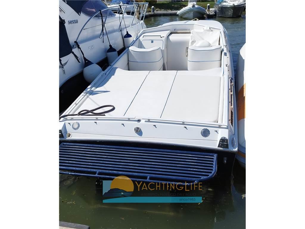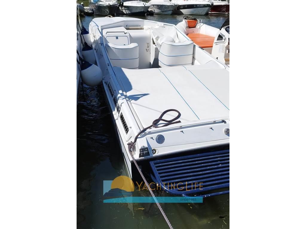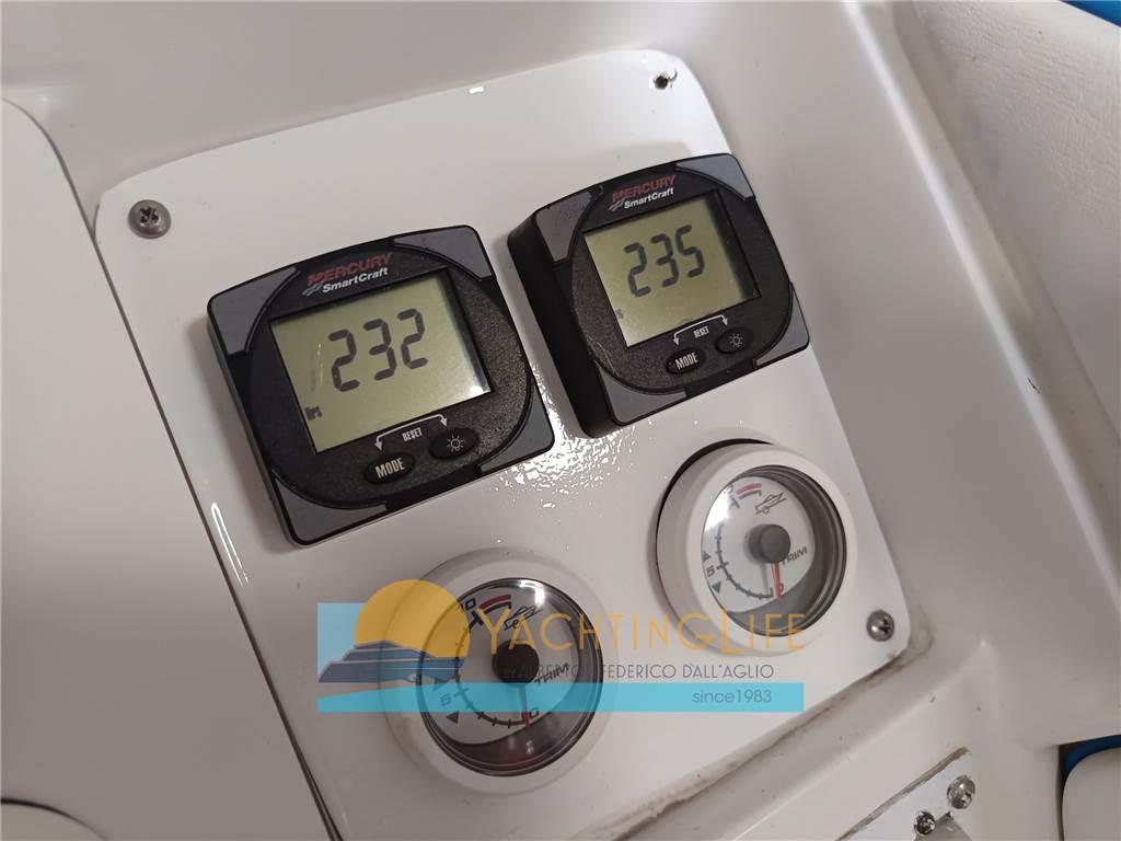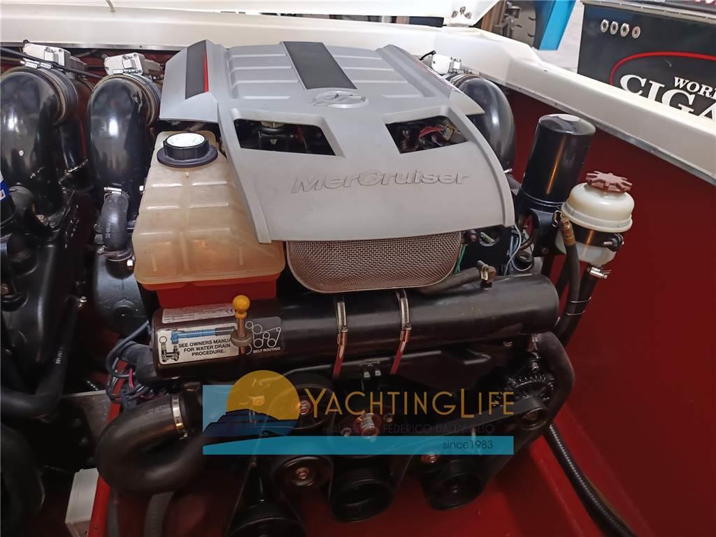 Imbarcazione con scafo bianco e fascia blu - Motori 496 HO e piedi Bravo One Xr installati nuovi 2010 - Timoneria sostituita 2018 - Carena portata a gelcoat, tappezzerie e fasce colorate 2018 - Specchio di poppa e pedana riverniciati 2018 - Moquette interna ed esterna 2018 - Stereo 2018 - Tendalino parasole leggero ed asportabile - N°4 collettori di scarico nuovi 2021 - Liquido refrigerante sostituito 2022 - Batterie nuove 2025 - N°1 pompa della benzina nuova e pompe dell'acqua salata revisionate - Manutenzione straordinaria con sbarco motori e piedi 2025 - Scarichi con valvola di silenziamento 2025 - Prese a mare supplementari per i motori nello scafo - Sbarco per controllo piedi poppieri con sostituzione tenute 2025 -