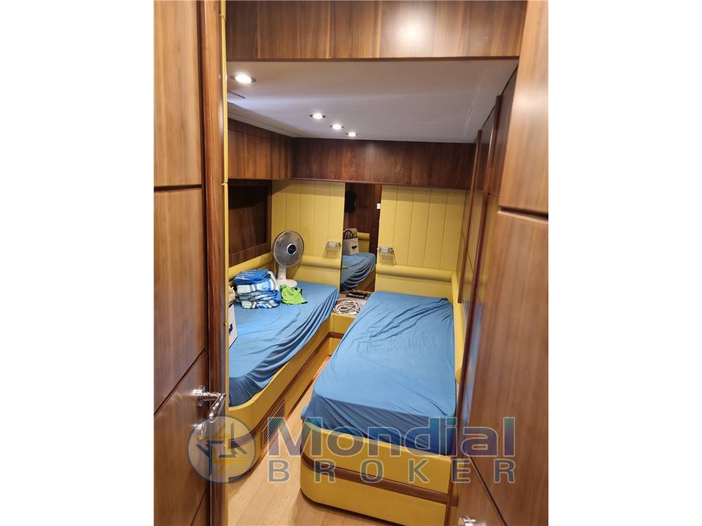 Cabina armatore centro barca con bagno dedicato,cabina vip a prua con bagno,cabina ospiti a 2 letti affiancati con bagno,cabina singola con bagno. Cabina equipaggio con accesso dallo specchio per 2 persone con bagno