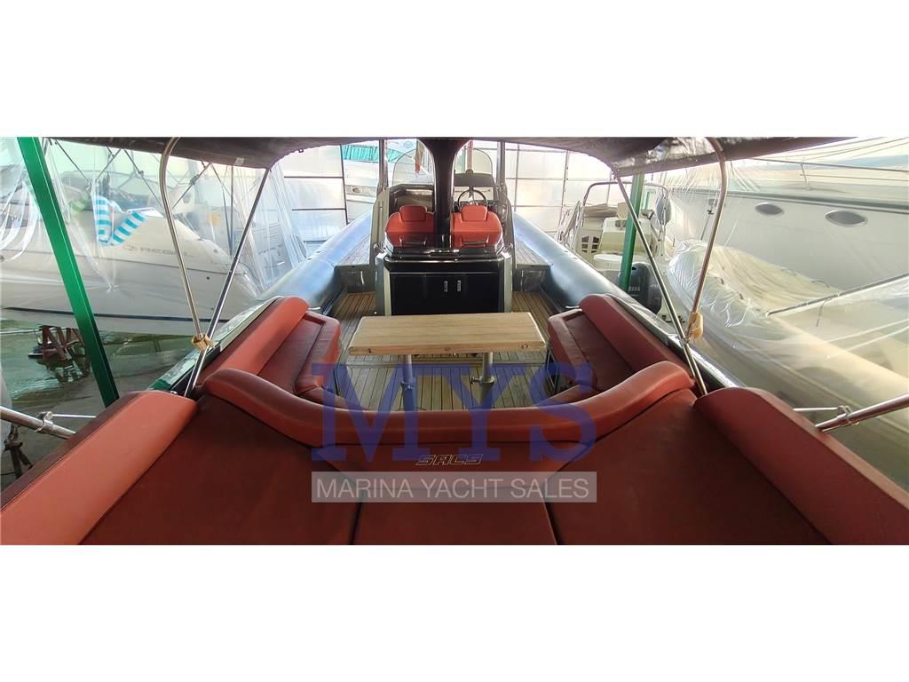 Sacs Strider 13 del 2017 in condizioni eccellenti, secondo proprietario, pochissimo utilizzato (470 ore moto), motorizzato entrofuoribordo diesel da 370 cv con joystick di manovra.