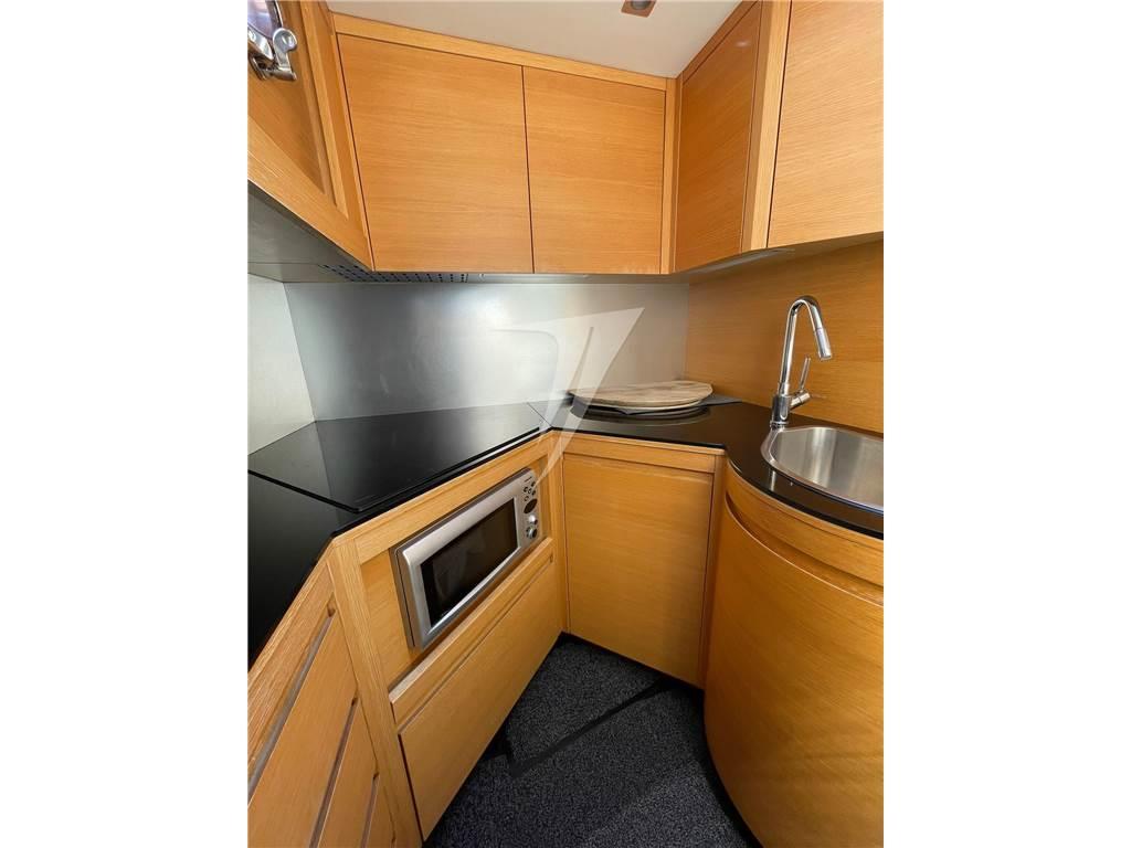 Altoparlanti, Antenna Satellitare TV, Aria condizionata, Barometro, Binocolo, Boetta fumogena, Boiler, Cappottina (invernale ed estiva traforata), Cassaforte, Cassetta di pronto soccorso, Cinture di salvataggio, Clima reversibile, Congelatore, Cucina (ad induzione), Cuscineria di poppa, Cuscineria di prua, Decoder satellite, Digitale Terrestre, Dissalatore (180 l/h), Dotazioni di sicurezza entro 50 miglia, DVD, Fornello, Forno, Frigorifero esterno, 3 Frigorifero interno (cucina - dinette - cabina Armatore), Fuochi a mano a luce rossa, Giubbetti di salvataggio, Home Theater, ICE Maker, Impianto acque nere, Impianto TV, 2 Inverter (1 Mastervolt +1 Victron Inverter 4,5 Kw/caricabatterie), Lavastoviglie, Lavatrice, Macchina caffè, Microonde, Prese interne 12v, Prese interne 220v, Radio AM/FM, Razzi a paracadute a luce rossa, Riflettore Radar, Salvagente anulare con cima munita di boetta luminosa, Stereo, 5 Telecamera (poppa+sala macchine), Telo coprisedile, 5 TV, WC marino elettrico