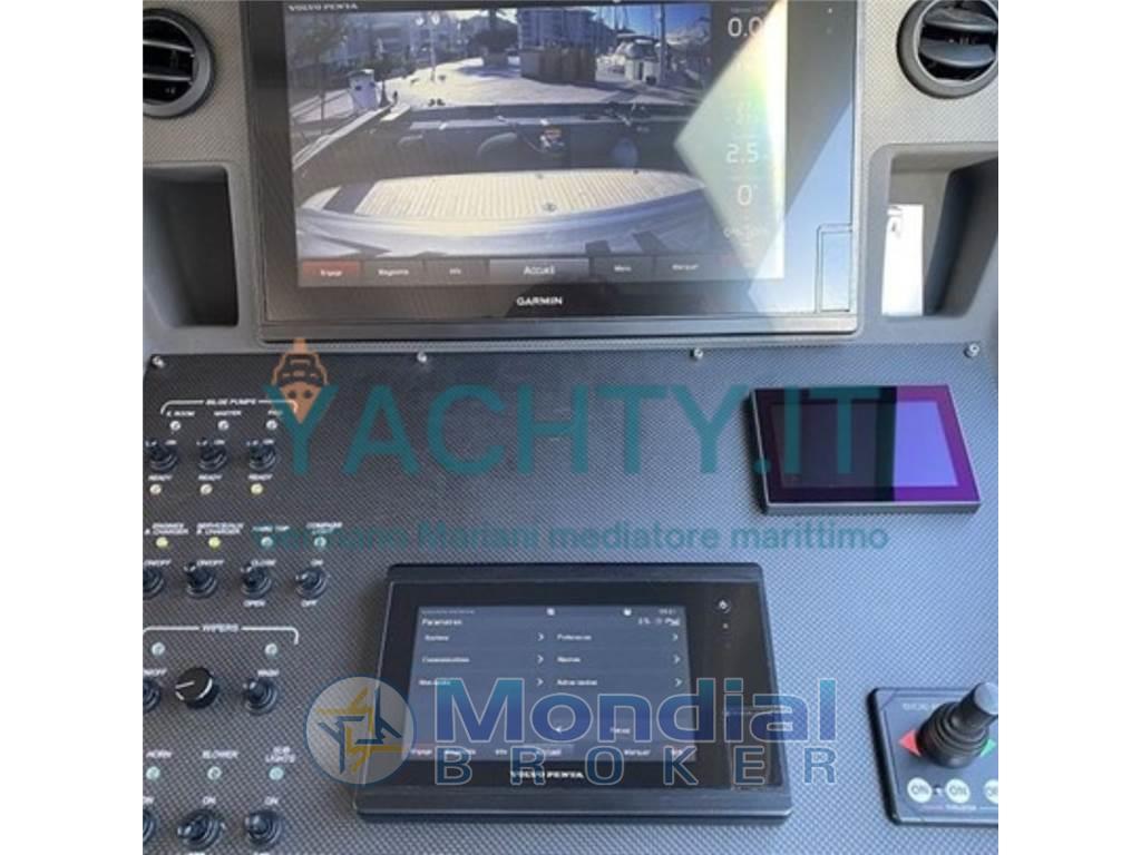 Spinto da una performante motorizzazione 2 x Volvo Penta D11 IPS950 da 725 hp, con sole 360 ore di moto, offre prestazioni brillanti, grande manovrabilità e massima efficienza in navigazione.