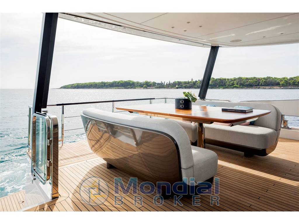 The "Deck2Deck" design element, with a raised transom, fundamentally changes the way the cockpit space can be utilized. If necessary, the aft part of the main deck can be enlarged, opening up excellent opportunities to bring all guests together in one area for parties or socializing in a large company.
