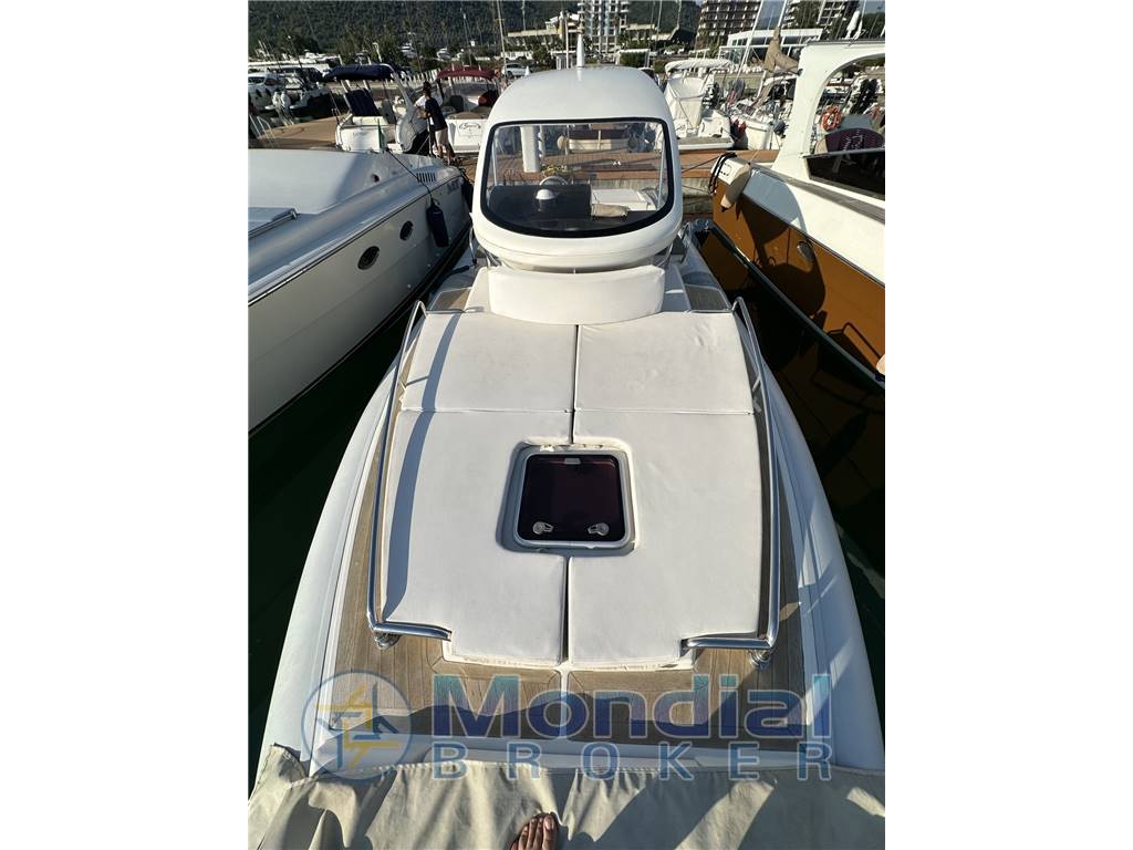 cabina open SPACE con letto a V a prua, WC separato; ampio prendisole di poppa con divani corredati di tappezzerie, pozzetto con divani e tavoli a dx e sx, plancia comando con seduta pilota e co pilota, prendisole di prua.