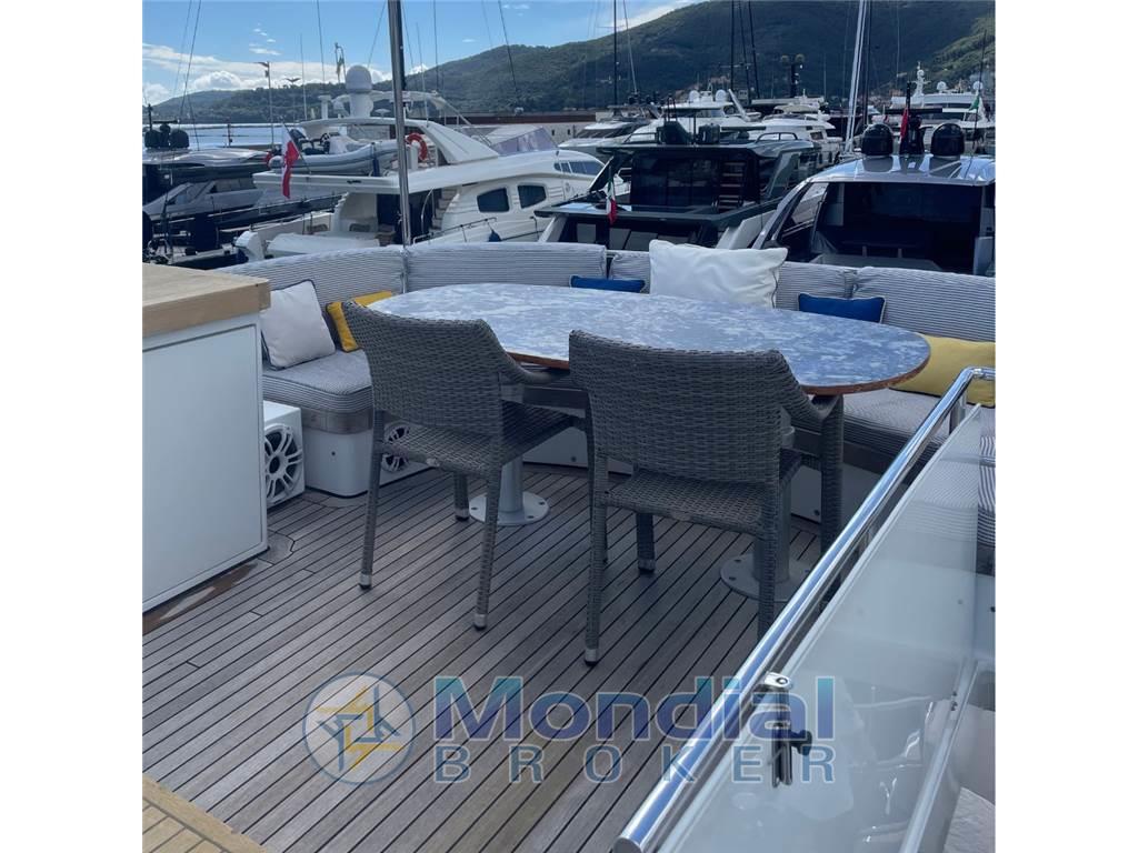 Altoparlanti, Antenna Satellitare TV, Aria condizionata, Asciugatrice, BBQ/ Grill, Bimini, Boiler (Caldaia a gasolio), Cappottina, Cassaforte, Clima reversibile, 3 Congelatore, Copripozzetto, Cucina, Cuscineria completa, Cuscineria di poppa, Cuscineria di prua, Cuscineria fly, Cuscineria Pozzetto, Decoder satellite, Digitale Terrestre, Dissalatore, Forno, Frigorifero esterno (1 cabina equipaggio), 2 Frigorifero interno, Home Theater, ICE Maker, Impianto acque nere, Impianto TV, Inverter, Lavasciuga, Lavastoviglie, 2 Microonde, 2 Piastra elettrica, Prese interne 220v, Radio AM/FM, Stereo, 2 Telecamera (a murata), Teli copri finestra, Telo copriconsolle, Tendalino, 6 TV, 5 WC marino elettrico (pressurizzato), Sostituito pompa acqua mare motore dx(2025)