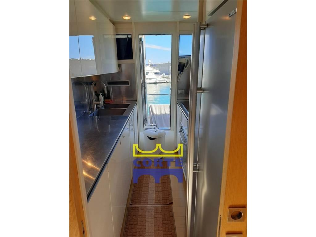 2 Winch tonneggio di poppa, Allarme motore, Allarme sentina, Ancora, Asse di rispetto, Autoclave, Batterie, Bussola, Camminamenti laterali in teak, Caricabatterie, Comando motori elettronico, Computer di bordo, Contamiglia, Doccia esterna, Doppia timoneria, Ecoscandaglio, Elica di poppa - stern thruster, Elica di prua - bow thruster, Flap idraulici, Gruette per tender su fly, Impianto antincendio, Log, Luci di cortesia, Passerella (elettroidraulica a scomparsa), Piattaforma (di poppa), Pilota automatico, Plotter con antenna GPS, Pompa di sentina automatica, Pompa di sentina elettrica, Porta ingresso, Porta laterale, Pozzetto Teak, Presa 220V banchina, Presa acqua banchina, Radar, Radio VHF, Ripetitore strumentazione, Salpa Ancore Elettrico, Scaletta da bagno, Tavolo pozzetto, Tromba, Winch tonneggio di prua