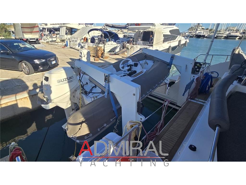 Ancora (FALCON maggiorata con 100 mt. di catena + 60mt. di cima), Altoparlanti (interni/esterni), Aria condizionata (caldo/freddo), Autoclave (2), Batterie servizi VICTRON AGM 6x165ah, Batterie motori NAUTICA IB AGM 2x120ah (2025) - Batteria generatore 100ah, Boiler, Bompresso, Caricabatterie (MASTERVOLT 100A), Clima reversibile, Contametri catena (QUICK sulla timoneria sx), Copripozzetto (invernale/estivo), Cuscineria completa, Dissalatore (DESSALATOR 260 L/h - 220V), Elica di prua - Bow Thruster (MAX POWER 15kW), Fiocco steccato autovirante (2024), Generatore (ONAN 9.5 kW), Gruette per tender, Impianto acque nere, Impianto stereo (FUSION), Impianto TV, Inverter (VICTRON 3KW), Jennaker con frullo, Lazy bag, Lazy jack, Luci sottoscafo, Oscuranti, Pannelli solari, Passerella (2024), Pompe di sentina automatiche, Pozzetto in Teak (sintetico) Prese interne 12v, Prese interne 220v, Sartiame spiroidale, Salpa ancore elettrico (QUICK), Serbatoio Acque Nere, Tavolo dinette abbattibile, Tavolo pozzetto, Telecamere (4), Teli copriconsolle, Teli copri finestre, Teli coprisedute, Tender SUR MARINE 3,70m - Motore SUZUKI 30HP (con copertura tubolari e copertura totale 2024 / Batteria 2024 / Impianto elettrico 2025), Tetto elettrico, TV a scomparsa, WC marini elettrici (4), WC marino manuale (1), Winch (2) LEWMAR, Winch elettrici (2) LEWMAR, Winch tonneggio di prua, Zanzariere, Zattere (ARIMAR 2 x 8p)