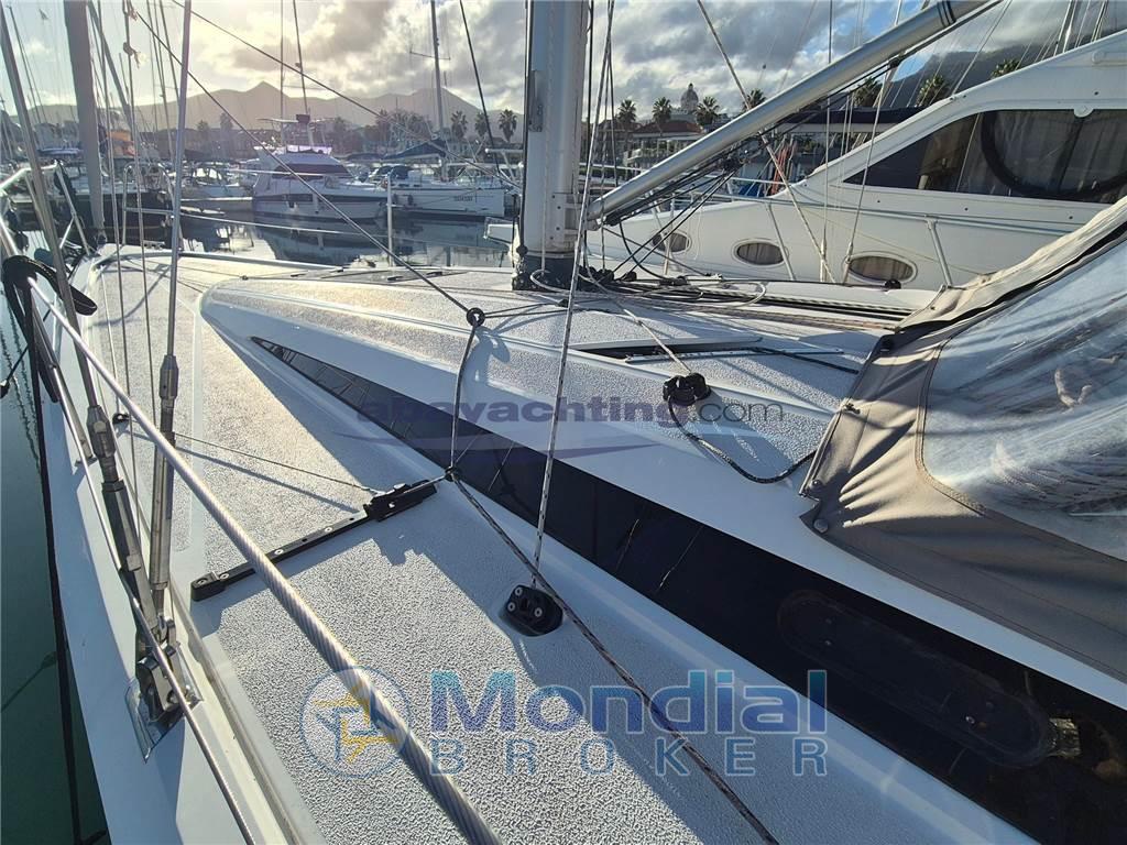 Accessoriata con doppio gioco di vele randa full-batten e fiocco in Norlam + randa e fiocco Quantum-Sail (ex demo), gennaker della North Sails, 6 winch, sprayhood, oblò doppi nelle cabine di poppa (optional), tavolo in pozzetto amovibile, sartiame in tondino ed elettronica della B&G completa di pilota automatico e AIS.
