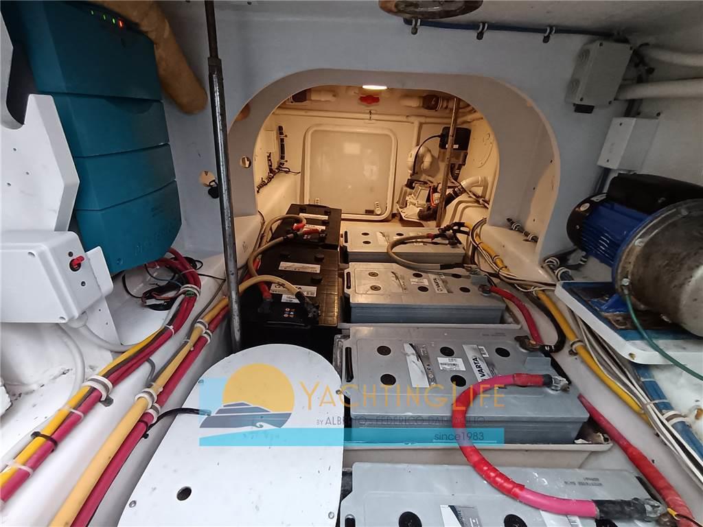 Allarme fumo/gas, Allarme motore, Allarme sentina, Ancora, Antenna radar, Autoclave, Bussola, Caricabatterie, Comando motori elettronico, Doccia esterna, DSC vhf, Ecoscandaglio, Elica di prua - bow thruster, Fari fissi a poppa, Flap idraulici, GPS, Hard top, Indicatori Flaps, Lavandino nel Pozzetto, Luci di cortesia, Passerella, Piattaforma, Pilota automatico, Pompa di sentina automatica, Pompa di sentina elettrica, Pompa di sentina manuale, Porta ingresso, Presa 220V banchina, Presa acqua banchina, Radar, Salpa Ancore Elettrico, Scaletta da bagno, Sedile Copilota, Winch Elettrico