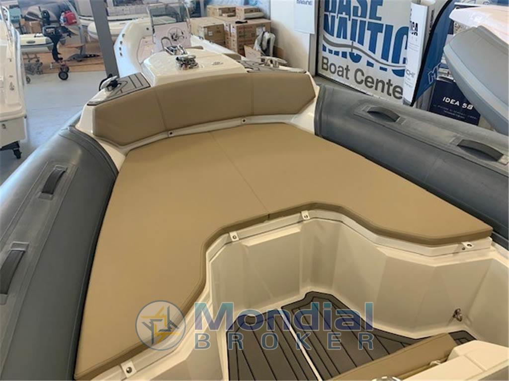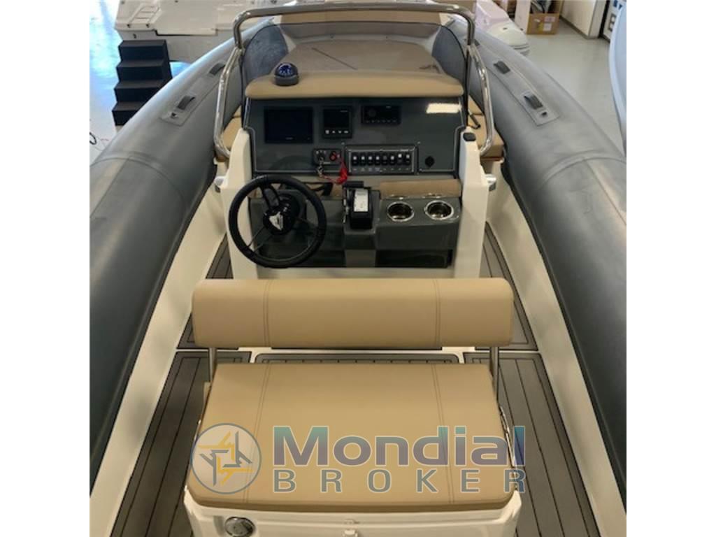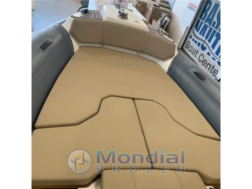 Tendalino parasole, tavolo pozzetto trasformabile in prendisole, seadek completo grigio, strumentazione GARMIN, tessuto tubolari military grey e tappezzeria beige silvertex, verricello elettrico, stereo fusion.