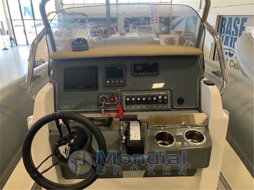 , Consolle di guida completa di parabrezza, tientibene inox, porta strumenti, timoneria, seduta anteriore a due posti