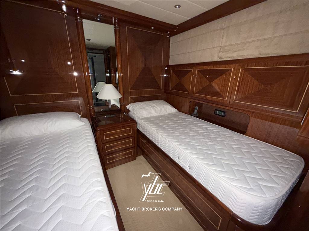 La cabina armatoriale, situata a prua, dispone di doppia toilette privata (una con doccia) e ampi spazi contenitivi. La cabina VIP offre un letto matrimoniale alla francese, armadio e bagno riservato. La terza cabina ospiti dispone di due letti singoli e bagno con box doccia separato.