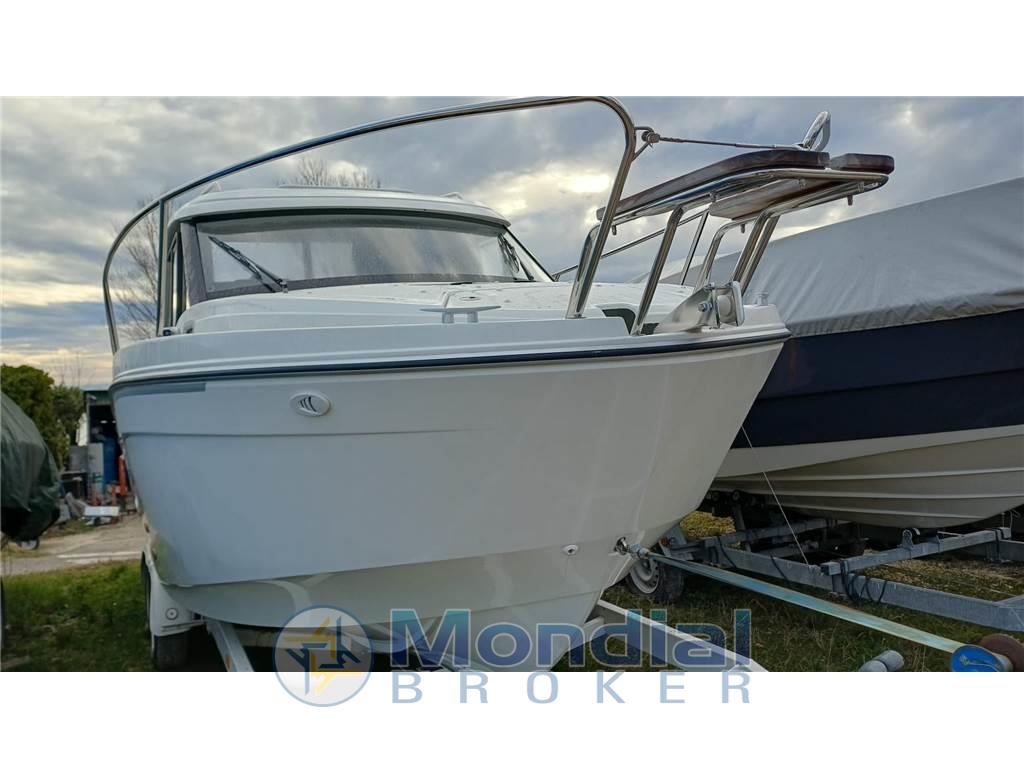 La Antares 7 è stata progettata pensando al tuo massimo comfort a bordo. Il pozzetto è spazioso e incredibilmente luminoso, perfetto per goderti ogni momento della giornata in mare. All'interno, la cabina è organizzata in modo intelligente: le ampie vetrate panoramiche inondano gli interni di luce naturale e offrono una vista mozzafiato, mentre l'area notte accogliente può ospitare comodamente due persone, rendendola perfetta per le tue brevi crociere. Non mancano una cucina compatta e un piccolo bagno, dettagli che trasformano la Antares 7 in una soluzione versatile per uscite di uno o più giorni.