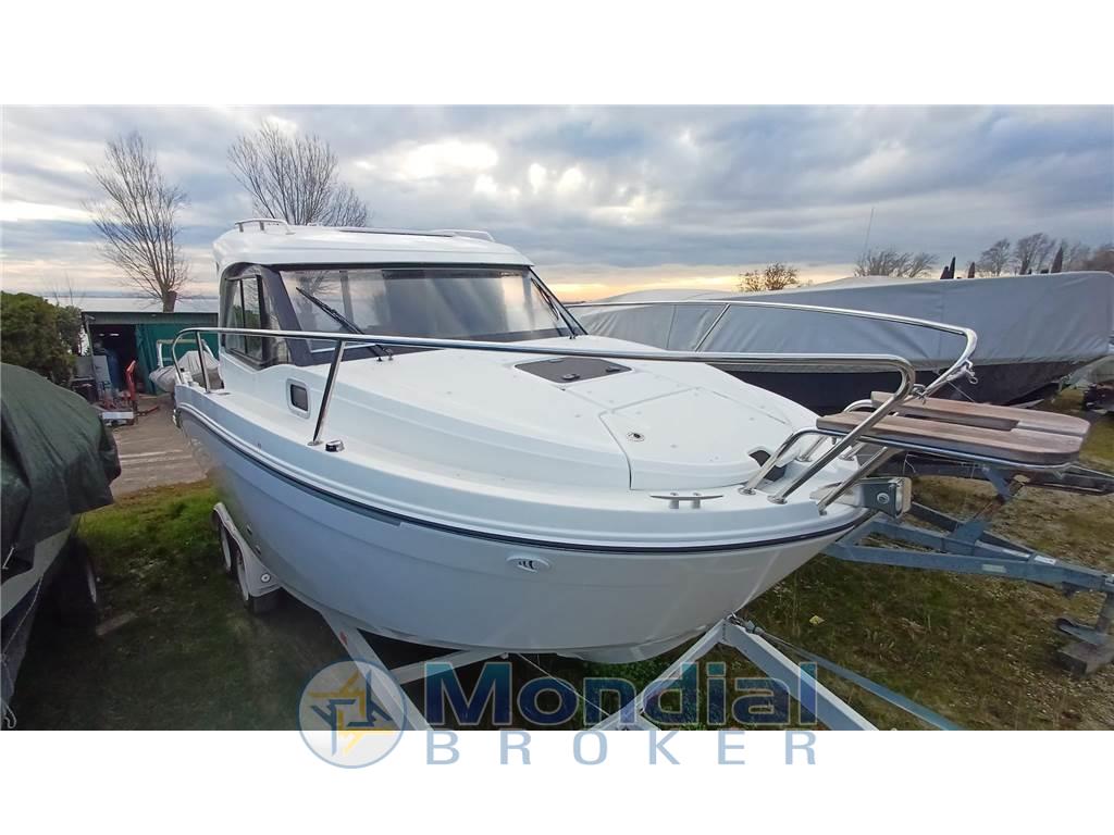 Il design della coperta massimizza lo spazio, offrendo ampie superfici per la pesca o per il puro relax. Muoversi a bordo è un piacere, grazie ai passaggi laterali ben progettati che rendono l'accesso al ponte di prua facile e sicuro. E nelle giornate più calde? Il tetto scorrevole in cabina ti permette di godere di una rinfrescante brezza marina.