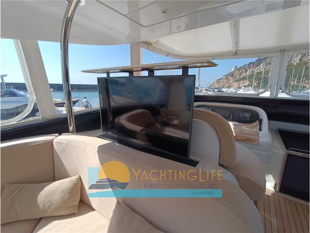 Altoparlanti, Antenna Satellitare TV, Antifurto, Aria condizionata, Asciugatrice, Aspirapolvere centralizzato, BBQ/ Grill, Boiler, Cassaforte, Clima reversibile (Maggiorato), Collegamento internet, Congelatore, Controllo Domotica, Copripozzetto, Cucina, Cuscineria completa, Decoder satellite, Digitale Terrestre, Dissalatore (360 LT/H Idromar), Dotazioni di sicurezza oltre 50 miglia, DVD, Forno (combinato Gaggenau), 2 Frigorifero esterno, 2 Frigorifero interno, Home Theater, ICE Maker, Impianto acque nere, Impianto TV, Inverter, Lavastoviglie, Lavatrice (Miele), Meccanismo saliscendi per TV (sul fly), Pavimento interno in legno (Wenge), 2 Piastra in vetroceramica, Prese interne 220v, Riscaldamento, Serbatoio Acque Nere, 3 Stereo, 4 Telecamera, Teli chiusura T-Top (sul fly estivi trasparenti 2023 e invernali), Teli copri finestra, Telo Copertura Fly, 6 TV, 7 WC marino elettrico, 2 Zattera di salvataggio