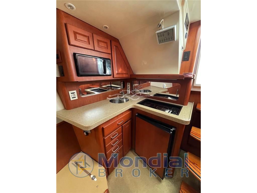 Flap interceptor Zipwake - trolling valve (entrambi i motori) - impianto stereo Fusion - vasca del vivo doppia - vasca del pescato doppia - divergenti - portacanne - prese di corrente per mulinelli elettrici nel pozzetto - seconda postazione guida su tuna tower - piano cottura due fuochi elettrico - frigo - microonde - gruppo elettrogeno 6 kW - aria condizionata - antenna TV Conexus - TV LCD - pedana di poppa con scaletta da bagno.