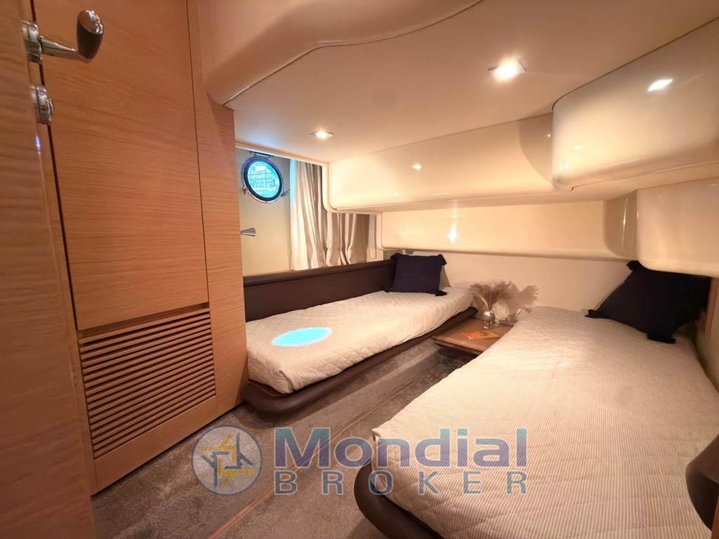 • La cabina ospiti a dx offre due letti singoli e accesso diretto al secondo bagno, con box doccia.