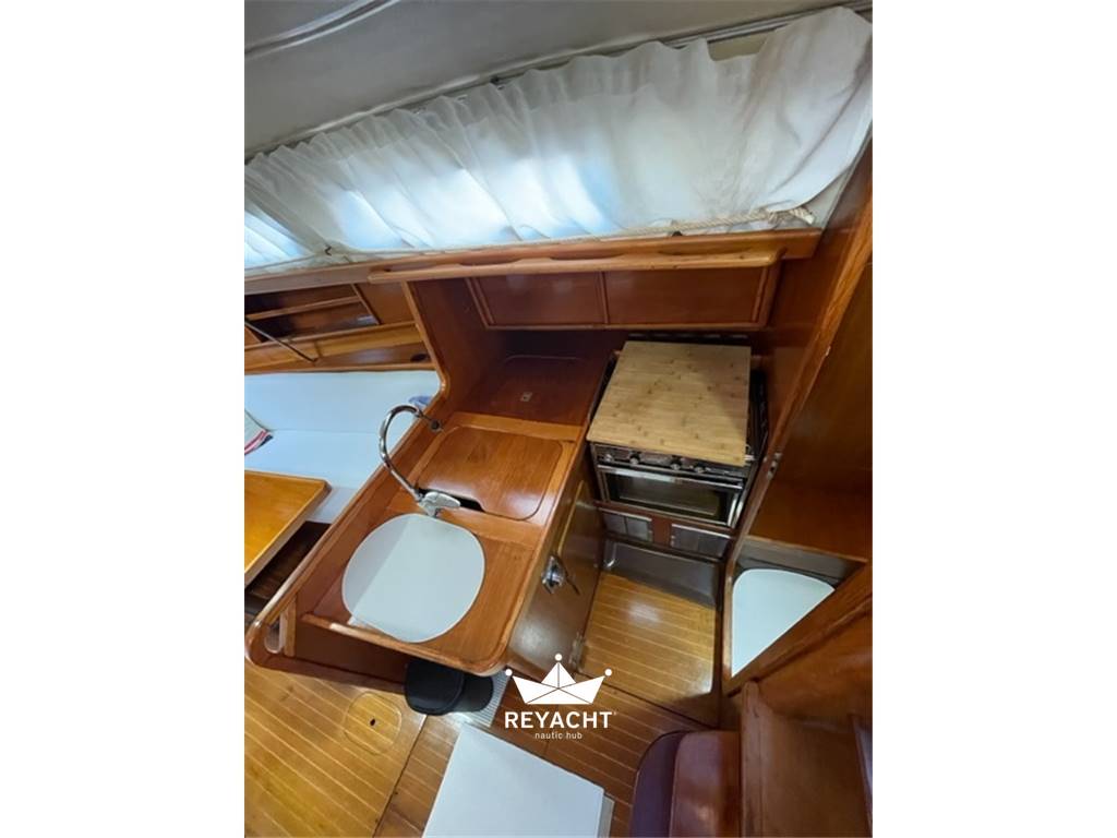 centrale e numerose scansie a murata. La cala vele è a poppa, in un ampio gavone che fiancheggia la cabina.