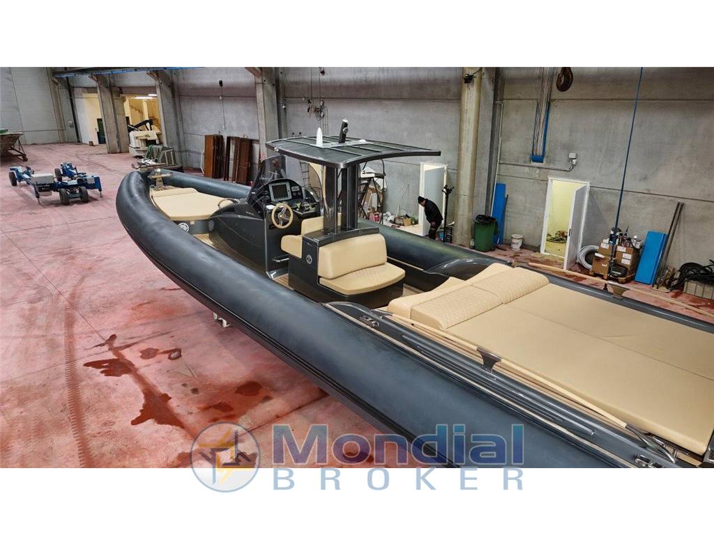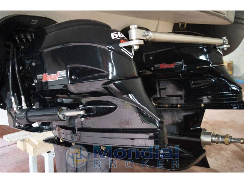 Questo Maxi RIB è stato completamente e professionalmente rifatto, risultando praticamente pari al nuovo. Il restauro include l'installazione di invertitori nuovi e di nuovissimi gruppi poppieri Konrad modello 680 Duoprop con eliche inox anch'esse nuove. L'estetica è impeccabile grazie alla tappezzeria interamente rifatta, alla nuova riverniciatura completa e ai mobili della cabina interna ricondizionati. Anche la sala macchine è stata completamente sistemata. Il gommone viene consegnato tagliandato, pronto alla boa e all'uso, con tutta la documentazione in perfetta regola.