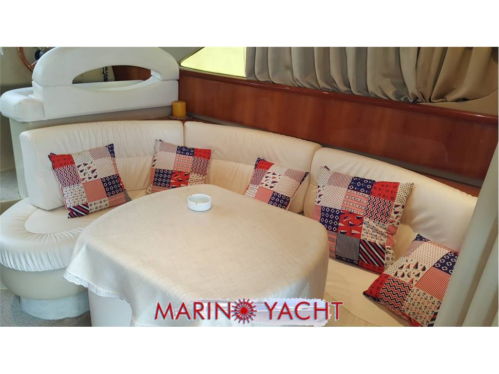 All'esterno, l'ampio pozzetto permette una comoda ottimizzazione degli spazi, mentre sul fly, comodi divani e un confortevole prendisole invitano a trascorrere momenti di relax anche durante la navigazione.