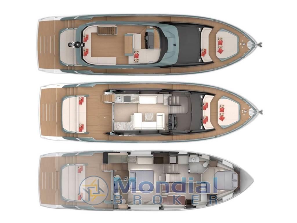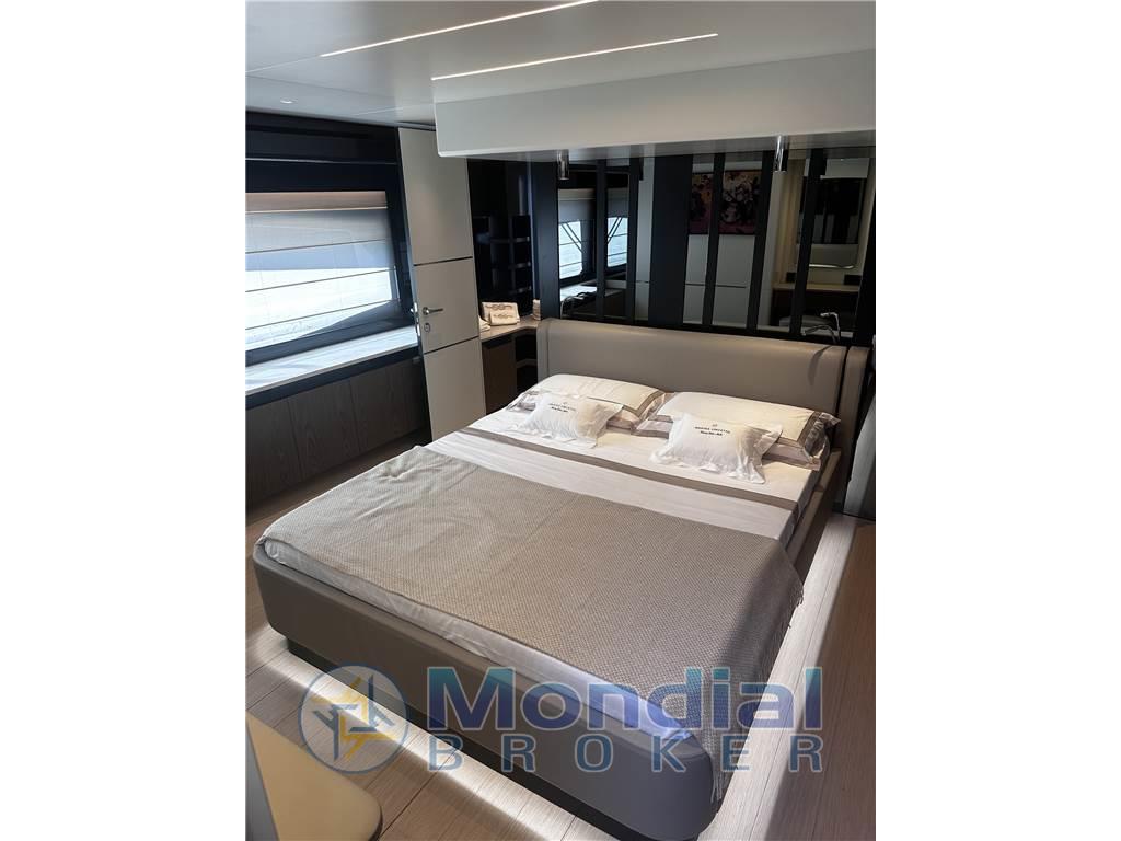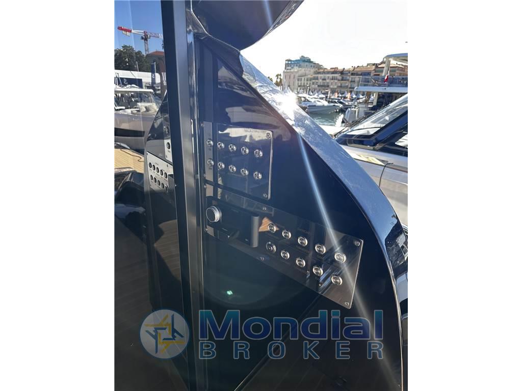 Allarme motore, Ancora, Angolo barra, Antenna radar, Apertura Vano Motore Elettrica, Auto Dynamic Trim Interceptor, Autoclave, Batterie, Bussola, Doccia esterna, Ecoscandaglio, Elica di prua - bow thruster, Flap elettrici, Impianto antincendio, Luci di cortesia, Luci subacquee, Piattaforma, Pilota automatico, Plotter con antenna GPS, Pompa di sentina automatica, Pozzetto Teak, Presa 220V banchina, Radio VHF, Salpa Ancore Elettrico, Scaletta da bagno, Sistema di posizionamento dinamico, Tavolo pozzetto, Tromba