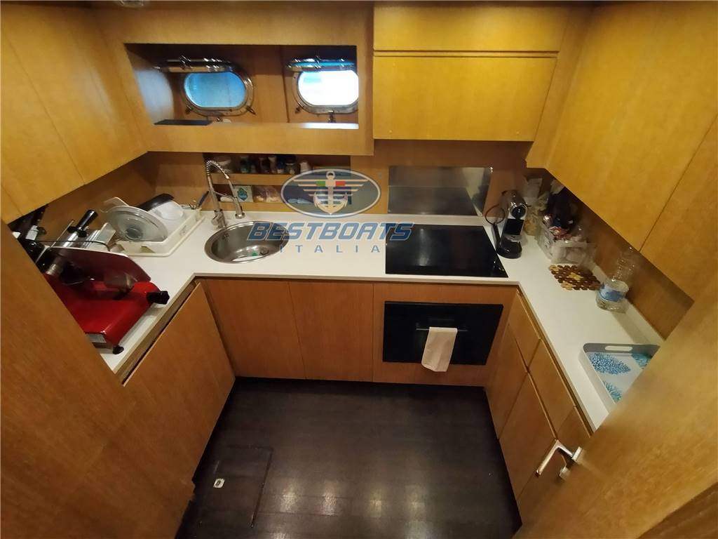 Presa corrente a terra; Inverter Mastervolt; Elica di poppa e prua SIDEPOWER; Pompa di sentina elettrica + manuale; Dissalatore IDROMAR; Lavastoviglie e lavatrice BOSCH; Forno SAMSUNG; Frigorifero; Congelatore; Caricabatterie; Passavanti in teak; Passerella idraulica BESENZONI; Cuscineria pozzetto; Tavolo pozzetto; Scaletta bagno idraulica