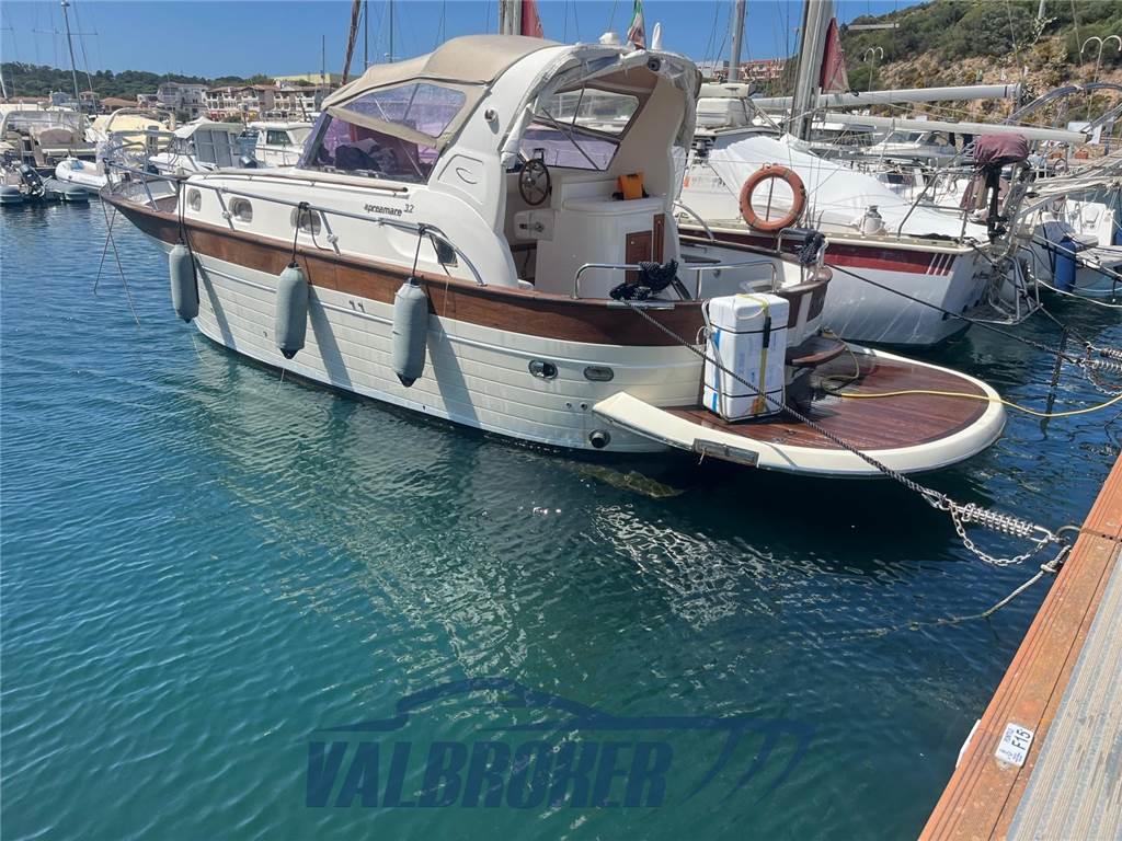 Apreamare 32 Confort, imbarcazione in perfetto stile mediterraneo, dalle linee esterne morbide e sinuose, ma dal carattere sportivo. Comodo prendisole di prua, utilizzabile anche in navigazione, piattaforma estesa da bagno di poppa in teak. Sottocoperta, ampia cabina di prua in versione open space, con spazi di stivaggio che garantiscono un’ottima vivibilità. Motorizzato 2x Cummins QSD 2.8 da 220HP turbo diesel in linea d'asse. Natante non targato.Venduto da noi all'attuale proprietario. 2022: nuova pompa acqua mare motore sinistro. 2024 tagliando motori.2025: sostituzione turbina motore sinistro, Rimozione e pulizia intercooler destro e sinistro.