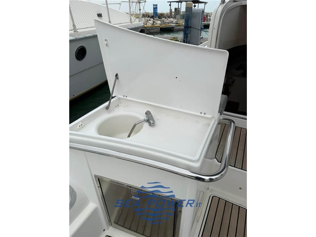 Allarme motore, Ancora, Apertura Vano Motore Elettrica, Autoclave, Batterie, Bussola, Caricabatterie, Computer di bordo, Contametri catena, Contamiglia, Doccia esterna, Ecoscandaglio, GPS, Impianto antincendio, Luci di cortesia, Piattaforma, Pompa di sentina automatica, Pompa di sentina elettrica, Pozzetto Teak, Presa 220V banchina, Radio VHF, Salpa Ancore Elettrico, Scaletta da bagno, Sedile Copilota, Tavolo, Tavolo pozzetto, Tromba