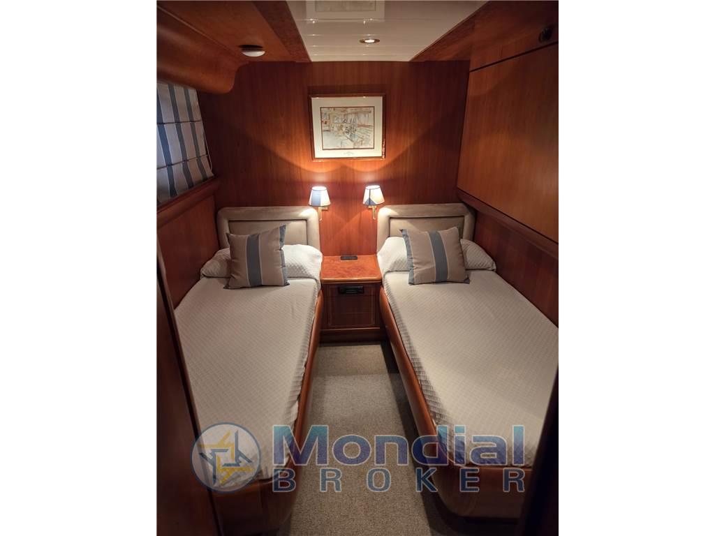 Cabina armatoriale con letto matrimoniale, cabina armadio e bagno - cabina Vip con letto matrimoniale e bagno - cabina ospiti con due letti in piano, terzo letto a scomparsa e bagno - cabina ospiti con due letti in piano, terzo letto a scomparsa e bagno.
