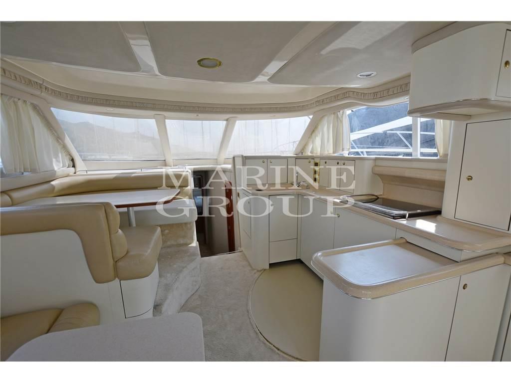 Altoparlanti, Aria condizionata, Bimini, Boiler, Cuscineria completa, Cuscineria di prua, Cuscineria fly, Digitale Terrestre, Dissalatore (100 l/h), Frigorifero esterno, Frigorifero interno, Impianto TV, Microonde, Piastra elettrica, Prese interne 12v, Prese interne 220v, Radio AM/FM, Stereo, Telo Copertura Fly, Tendalino, TV