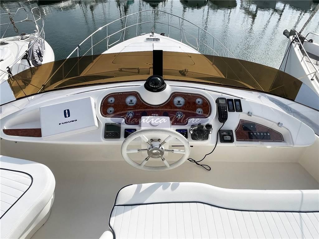 Allarme motore, Ancora, Angolo barra, Autoclave, Autogonfiabile, Batterie, Bussola, Caricabatterie, Comando motori elettronico (Volvo Penta), Computer di bordo, Doccia esterna (con miscelatore c/f), Doppia timoneria, Ecoscandaglio (Furuno), Elica di prua - bow thruster, Flap idraulici, GPS (Furuno), Impianto antincendio, Indicatori Flaps, Passerella (Opacmare), Piattaforma (con rivestimento in teak), Pilota automatico (Furuno), Pompa di sentina automatica, Pompa di sentina elettrica, Pompa di sentina manuale, Porta ingresso (Inox e vetro), Pozzetto Teak, Presa 220V banchina, Presa acqua banchina, Radio VHF, Ripetitore strumentazione (sul fly), Rollbar, Salpa Ancore Elettrico, Scaletta da bagno, Tender (Arimar 2,50 chiglia pneumatica e fondo in alluminio + motore Honda 5 hp), Tromba, 2 Winch tonneggio di poppa