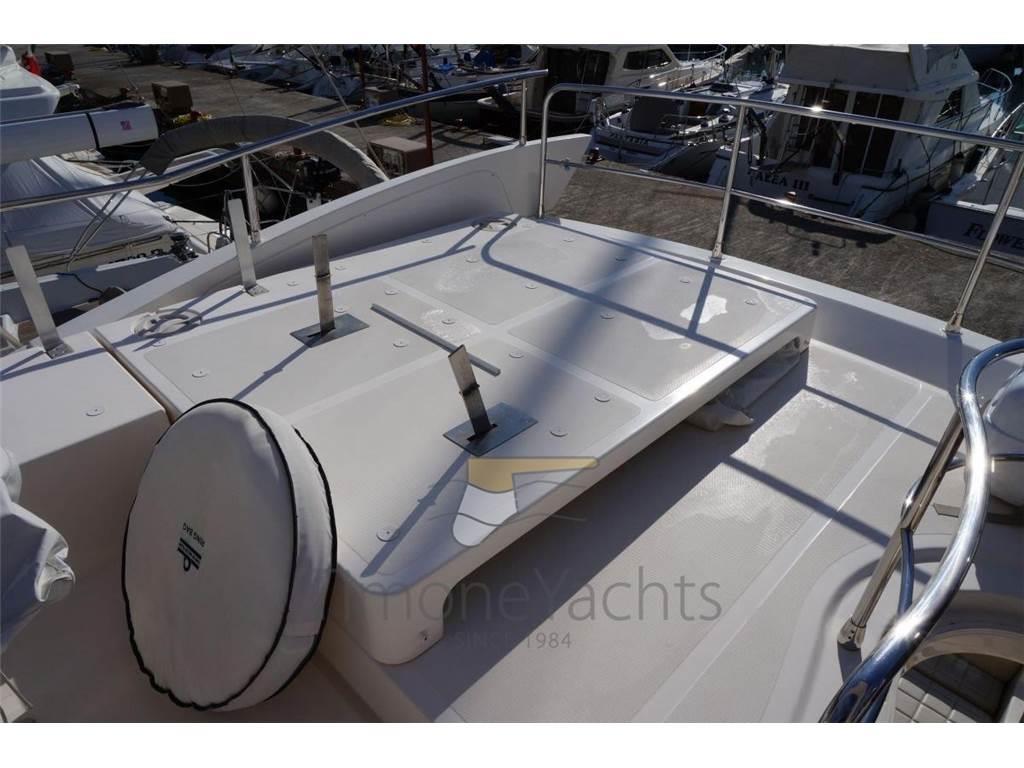 Allarme fumo/gas, Allarme motore, Allarme sentina, Alternatore, Ancora, Camminamenti laterali in teak, Doppia timoneria, Elica di prua - bow thruster, Flap idraulici, Passerella, Piattaforma, Ponte in teak, Pozzetto Teak, Presa acqua banchina, Salpa Ancore Elettrico, Tromba, Winch tonneggio di poppa.