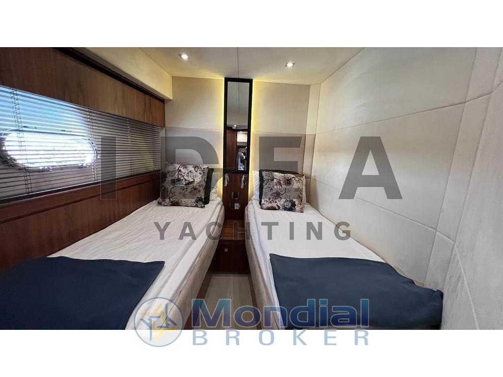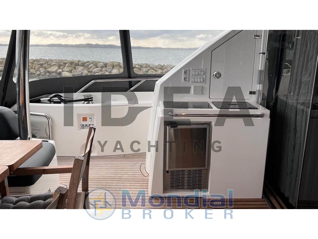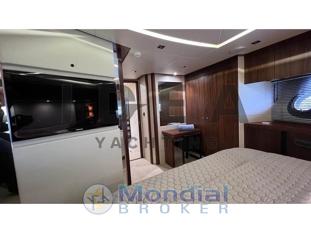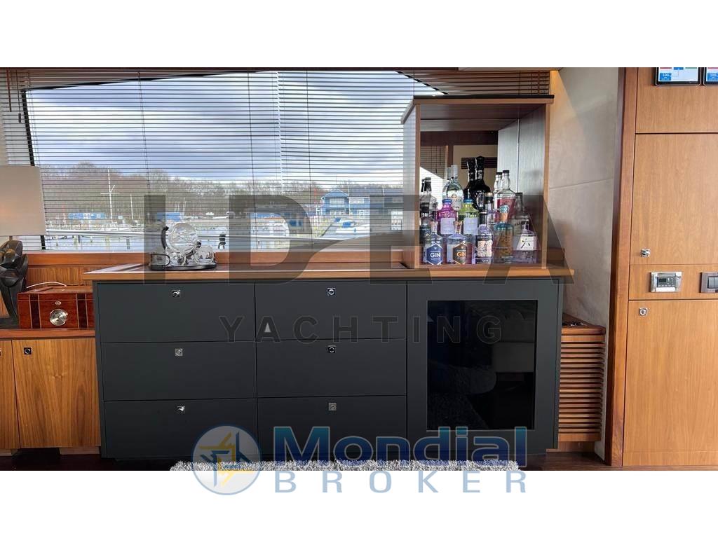 Gli interni mettono in mostra un'eccezionale maestria, con finiture in raso in noce, nuovi lussuosi rivestimenti e un sistema di intrattenimento all'avanguardia. Il spazioso salone principale combina aree soggiorno e pranzo progettate per il comfort del proprietario, completate da finestre panoramiche e un ampio abitacolo. Sopra, l'ampio terrazza solare presenta un tetto rigido con tetto apribile elettrico e recinti trasparenti rimovibili, che permettono il piacere in qualsiasi condizione meteorologica. Apri il tetto per le serate sotto le stelle o chiudilo per un riparo — senza la secca delle coperture tradizionali. Il terrazzo solare include anche una TV integrata, un bagno bagnato completo con frigorifero, macchina per ghiaccio e griglia, e una spa Jacuzzi — ideale per il divertimento in famiglia e per le crociere prolungate. L'alloggio per un massimo di 10 ospiti include una suite padronale a piena fascia, cabina VIP anteriore, cabine gemelle a sinistra e a dritta, oltre a alloggi per l'equipaggio a poppa che possono fungere da alloggio aggiuntivo per gli ospiti.