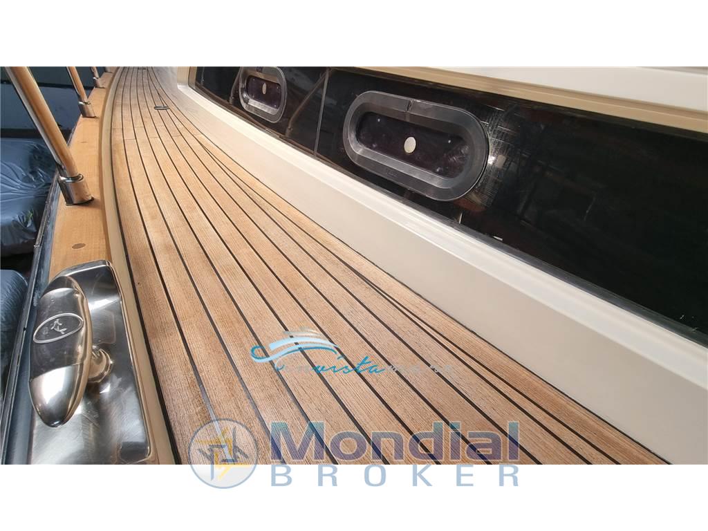 Allarme motore, Allarme sentina, Ancora, 2 Autogonfiabile, Camminamenti laterali in teak, Doccia esterna, Doppia timoneria, Elica di prua - bow thruster, Faro orientabile, Flap idraulici (N°2), Impianto antincendio, Lavaggio catena, Lavandino nel Pozzetto, Luci di cortesia, Passerella (IDRAULICA), Piattaforma, Pompa di sentina automatica, Pompa di sentina elettrica, Pompa di sentina manuale, Porta ingresso, Pozzetto Teak, Presa 220V banchina, Presa acqua banchina, Raddrizzatore, Salpa Ancore Elettrico, Scaletta da bagno, Tender, Tromba, Winch tonneggio di poppa.