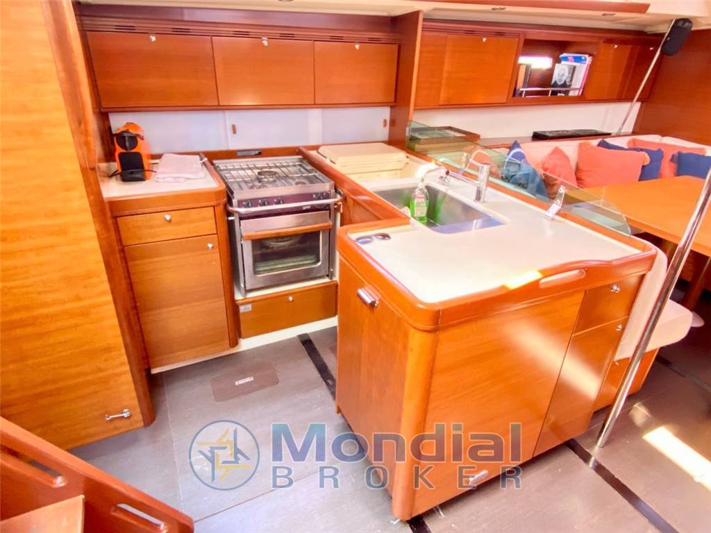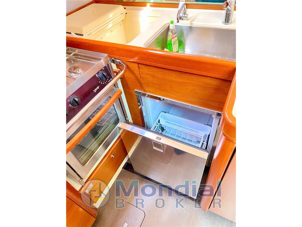 Interni in legno Moabi e il paiolato in Wenge. Versione3 cabine 3 bagni con WC elettrici così offre privasi agli ospiti ed all'armatore. In dinette la cucina è posizionata ad elle composta da: lavello con 2 rubinetti acqua dolce/salata, frigorifero, ghiacciaia, lavastoviglie, 2 fuochi con forno basculante e alcuni armadietti per lo stivaggio della cambusa e stoviglie. La cabina armatoriale è a prua con un ampio letto matrimoniale, le cabine ospiti a poppa. Due divani uno difronte all'altro il più grande abbraccia il tavolo il quale ospita 6/8 commensali.