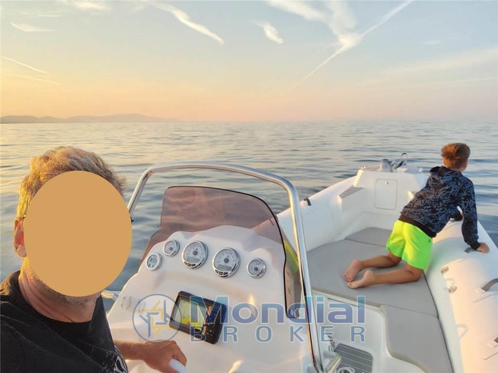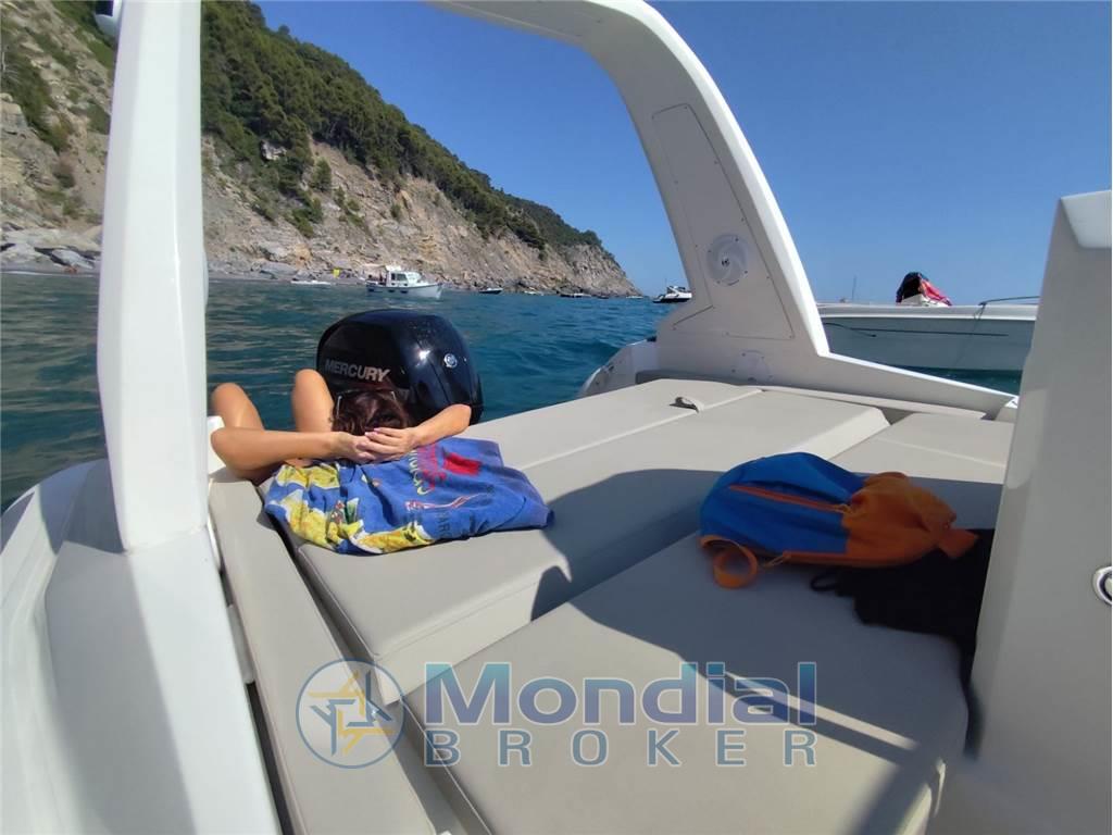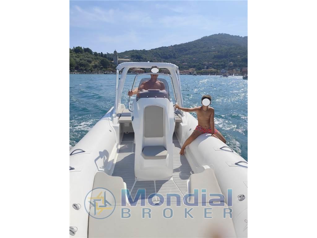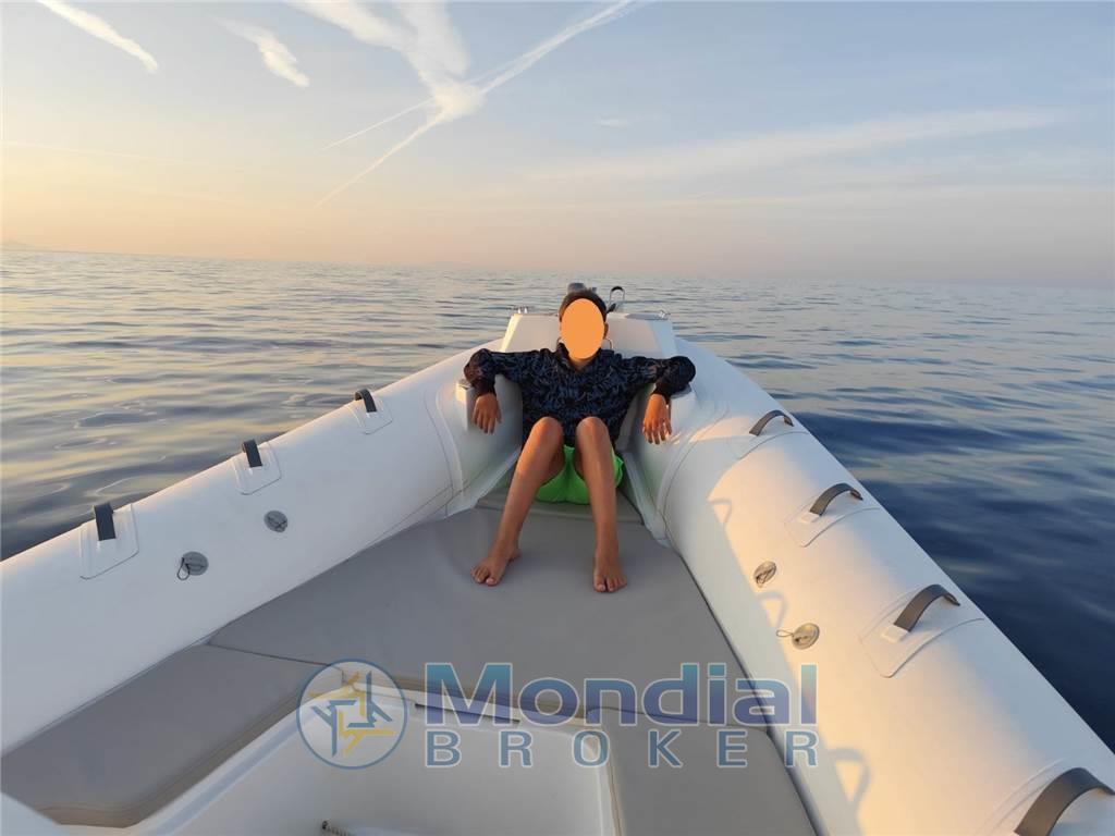 tubolari bianco carbon di spessore maggiorato; motore con 5 anni garazia dal 2024; tagliandato 6.2025; Ancora e Catena lunga 30 metri tutto in Acciaio Inox; Conta Catena Digitale con comando in consolle; Tecniteak su tutto il calpestio compreso plancette di poppa; Consolle completa di Prese USB, USBC e presa maggiorata per attacco gonfiatore elettrico; Presa maggiorata in pozzetto per attacco frigorifero (sia portatile che fisso); Ganci di Sollevamento per aggancio Sospendite; Gonfiatore Elettrico; kit Comandi a Chiesuola con indicazioni digitali e analogiche stato motore e consumi, system speedo SC 1000, indicatore trim, indicatore carburante; VESSEL VIEW mobile con controllo tutti i dati dal cellulare;Cuscineria completa con sedile di poppa trasformabile in prendisole doppio; Doppio Tavolino sia a prua che a poppa;