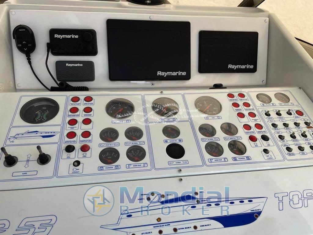 Passerella elettro-idraulica - telecamera sala motori (2022) - antenna SAT TV Seatel - antenna TV Glomex - TV LCD a scomparsa nel salone - TV LCD cabina armatoriale - microonde - piano cottura elettrico tre fuochi - frigo - mobile bar nel pozzetto con lavello, piastra elettrica due fuochi - elica di prua elettrica - gruppo elettrogeno Kohler 8 kW - aria condizionata.