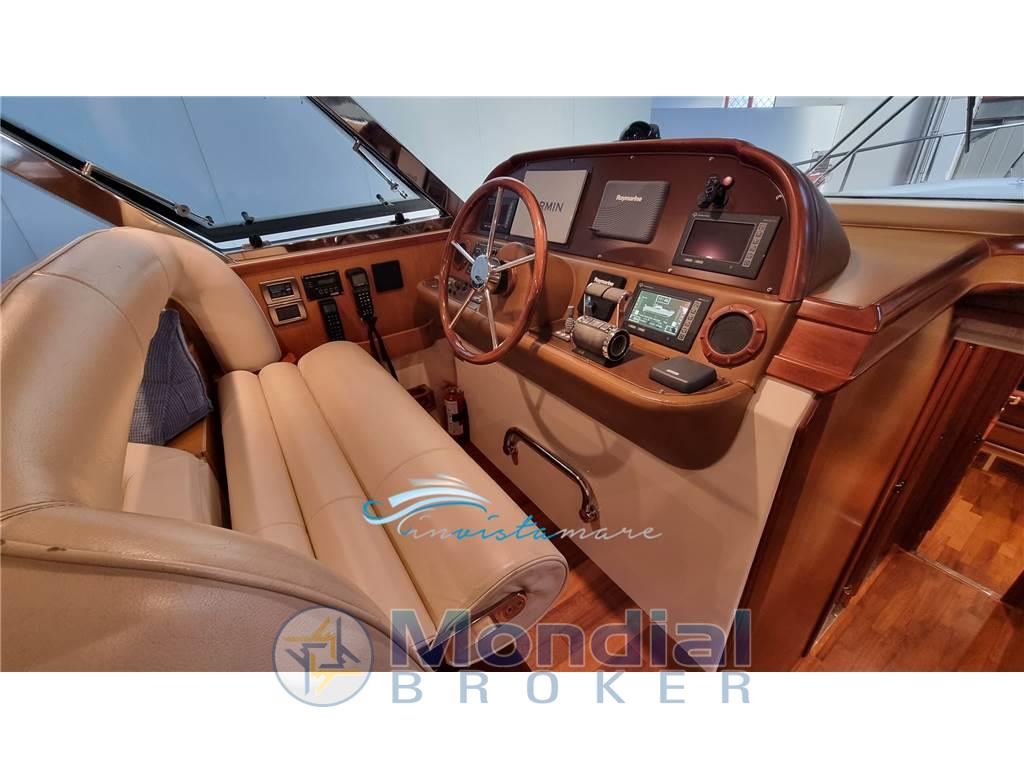 Allarme motore, Allarme sentina, Ancora, Angolo barra, Antenna radar, Autoclave, 2 Autogonfiabile, Batterie, Bussola, Camminamenti laterali in teak, Caricabatterie, Comando motori elettronico, Contametri catena, Contamiglia, Doccia esterna, Doppia timoneria, Ecoscandaglio, Elica di prua - bow thruster, Faro orientabile, Flap idraulici (N°2), GPS, Impianto antincendio, Lavaggio catena, Lavandino nel Pozzetto, Luci di cortesia, Luci di navigazione, Passerella (IDRAULICA), Piattaforma, Pilota automatico, Plotter, 2 Plotter con antenna GPS, Pompa di sentina automatica, Pompa di sentina elettrica, Pompa di sentina manuale, Porta ingresso, Pozzetto Teak, Presa 220V banchina, Presa acqua banchina, Raddrizzatore, Radio VHF, Salpa Ancore Elettrico, Scaletta da bagno, Tender, Tromba, Winch tonneggio di poppa